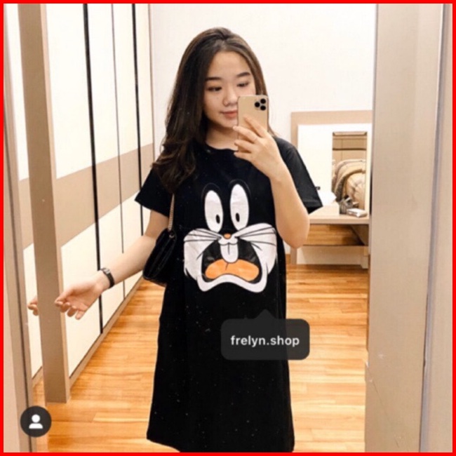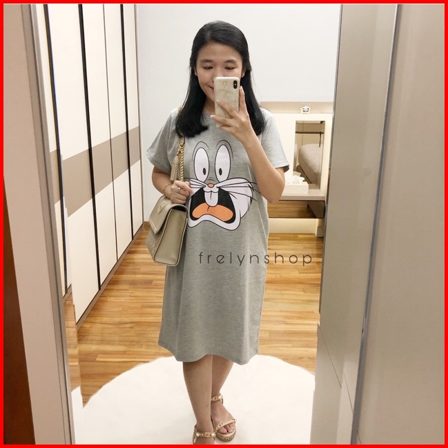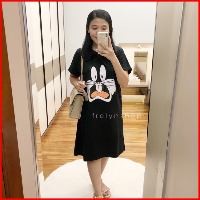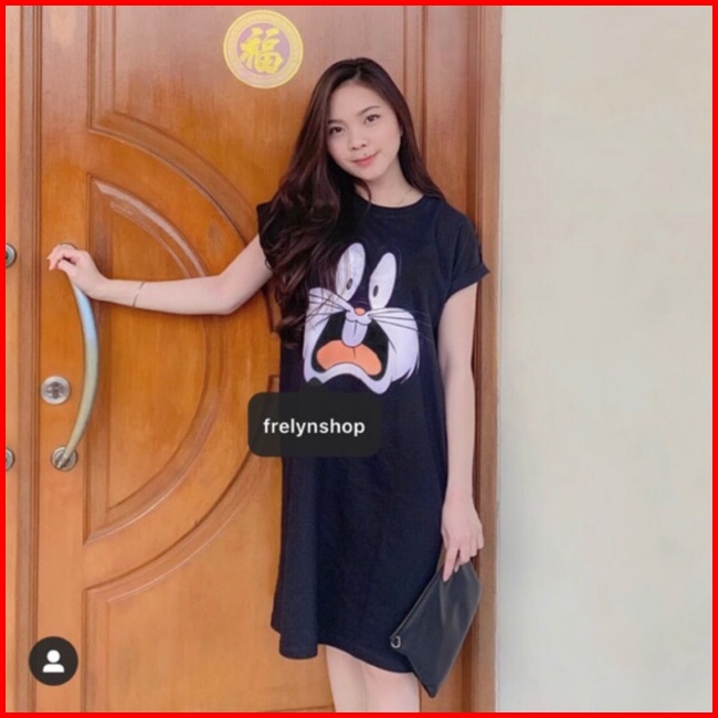 Dress Katun Bunny Hitam Abu Kuning Biru Elektrik Maroon