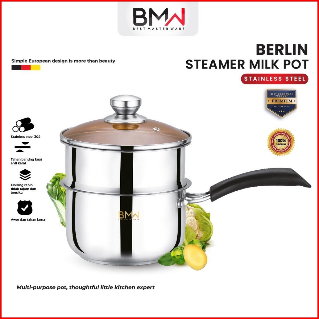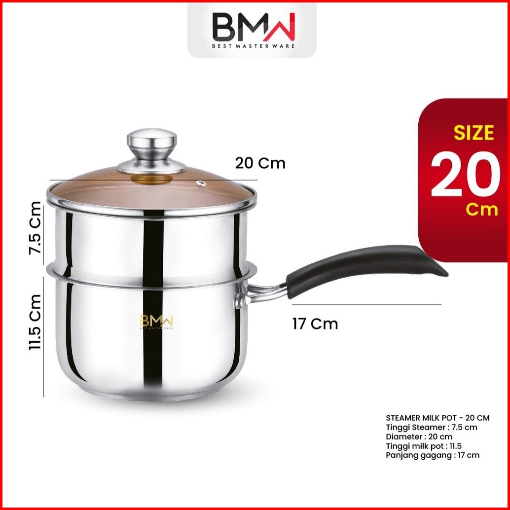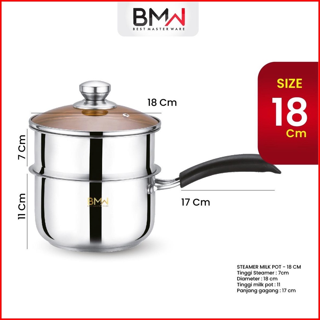 Bmw Kitchen Ware - Panci Milk Pot Panci Stainless Steel Panci Steamer Susun 18 20 Cm