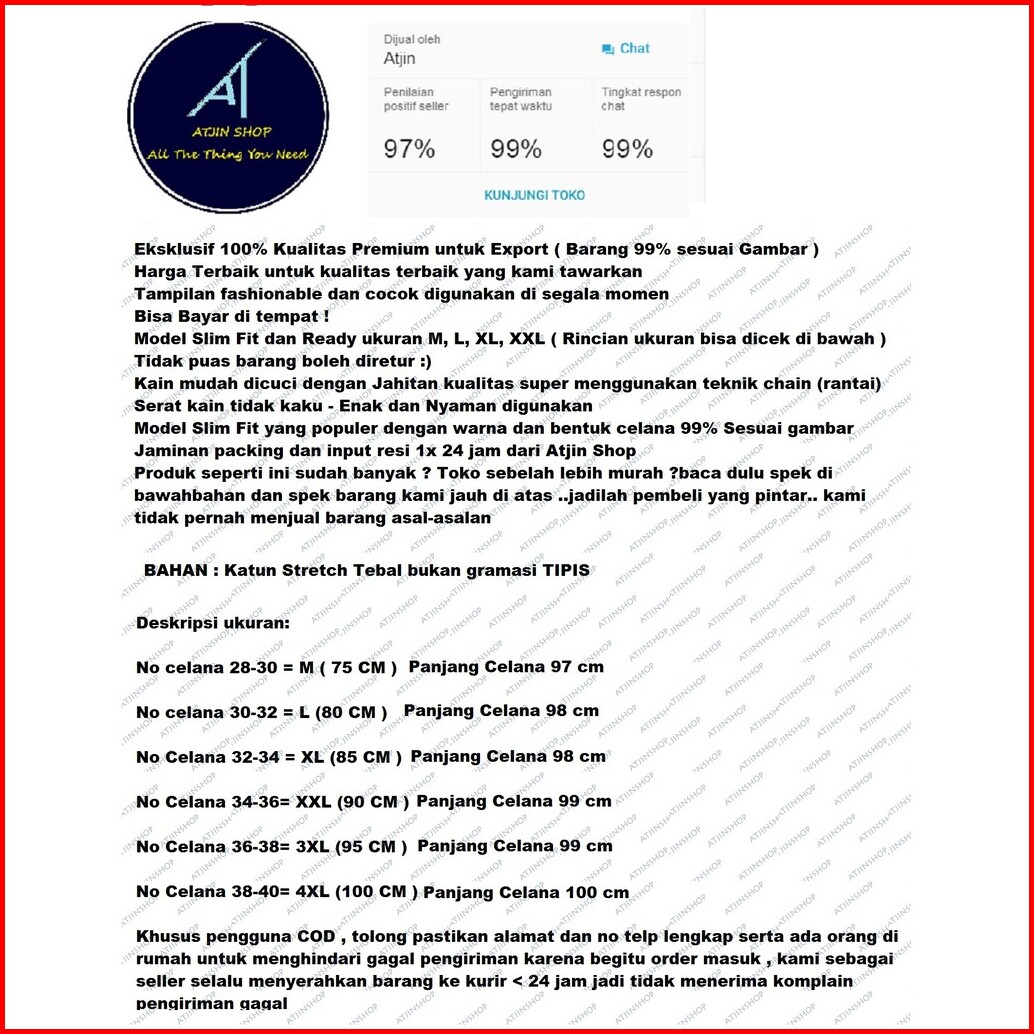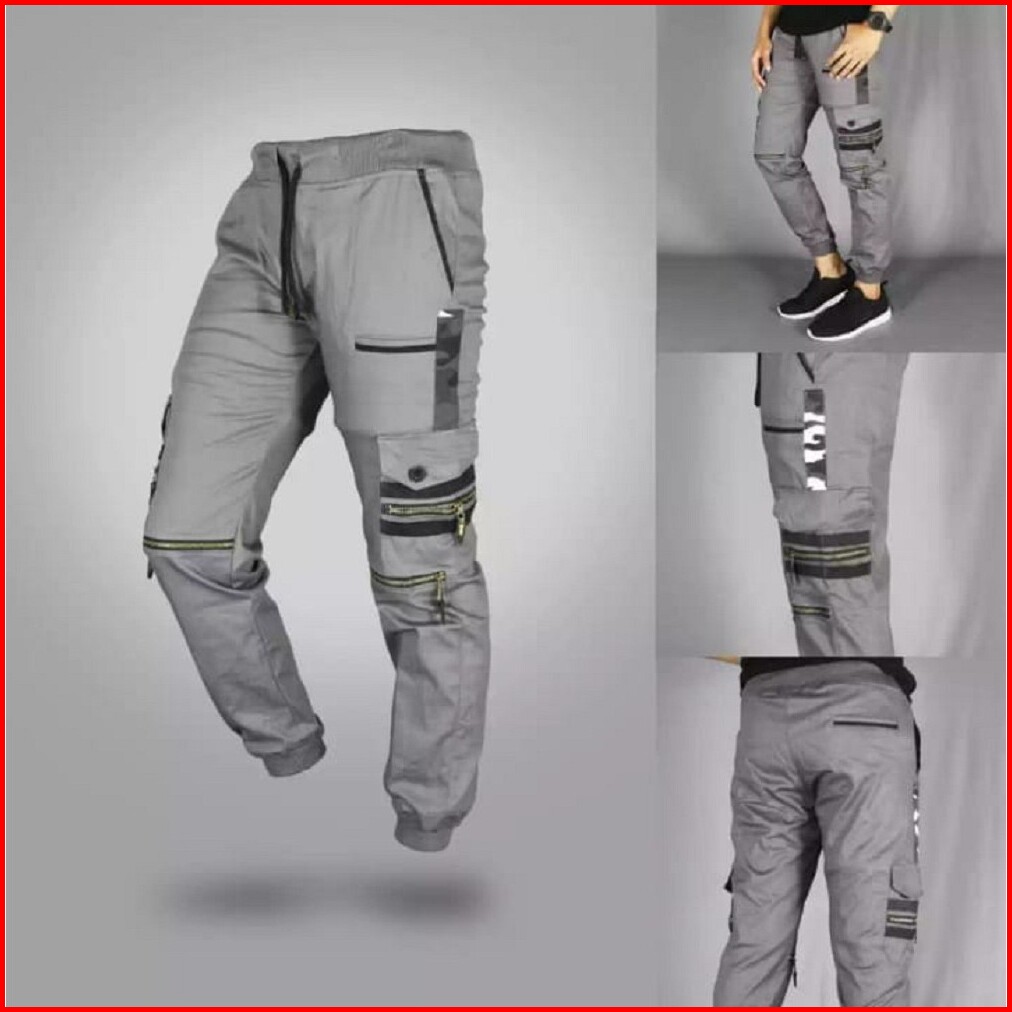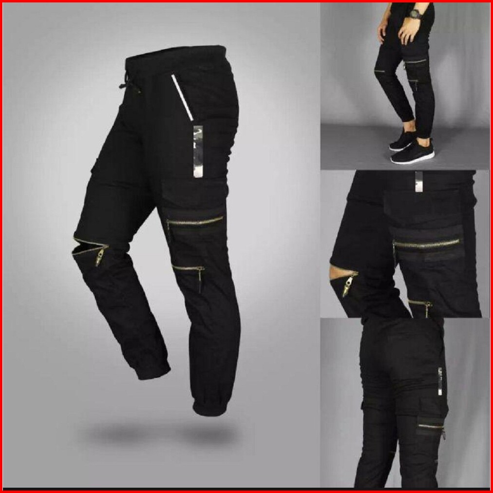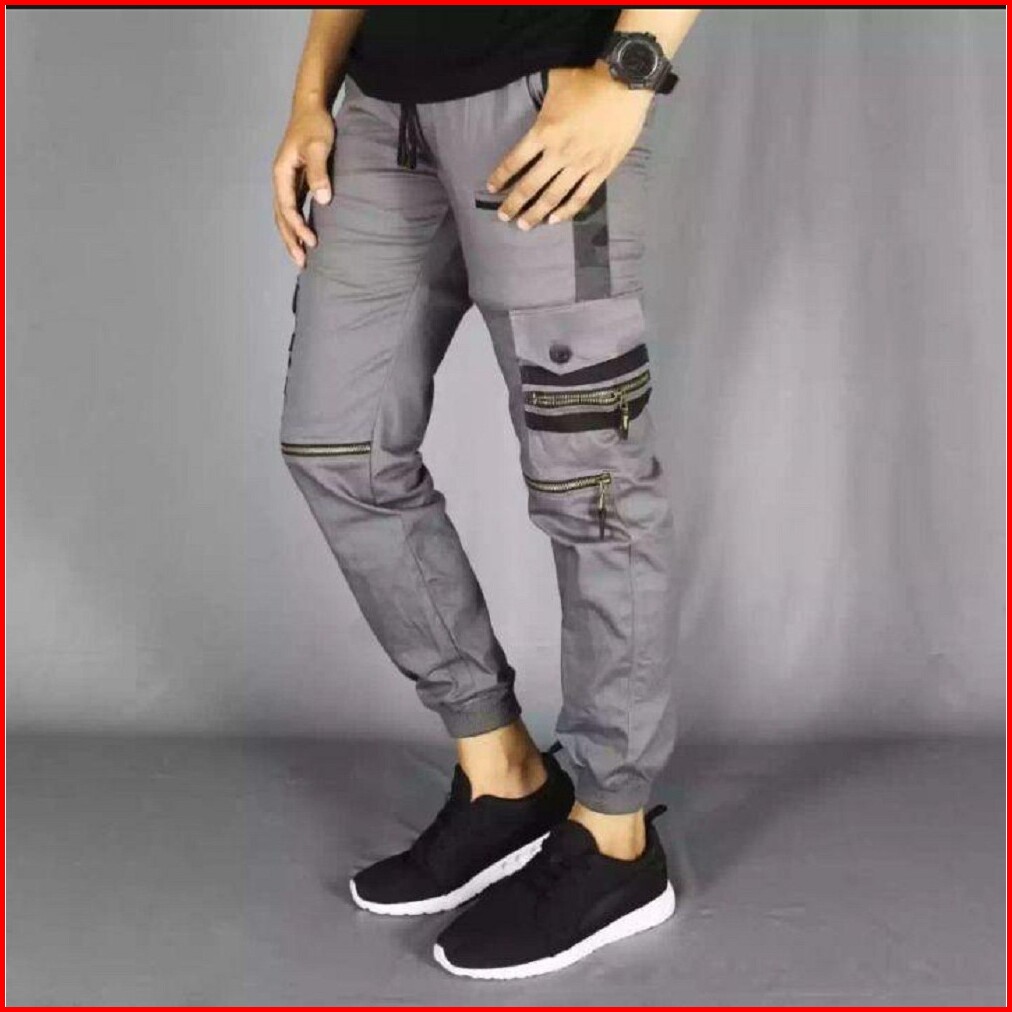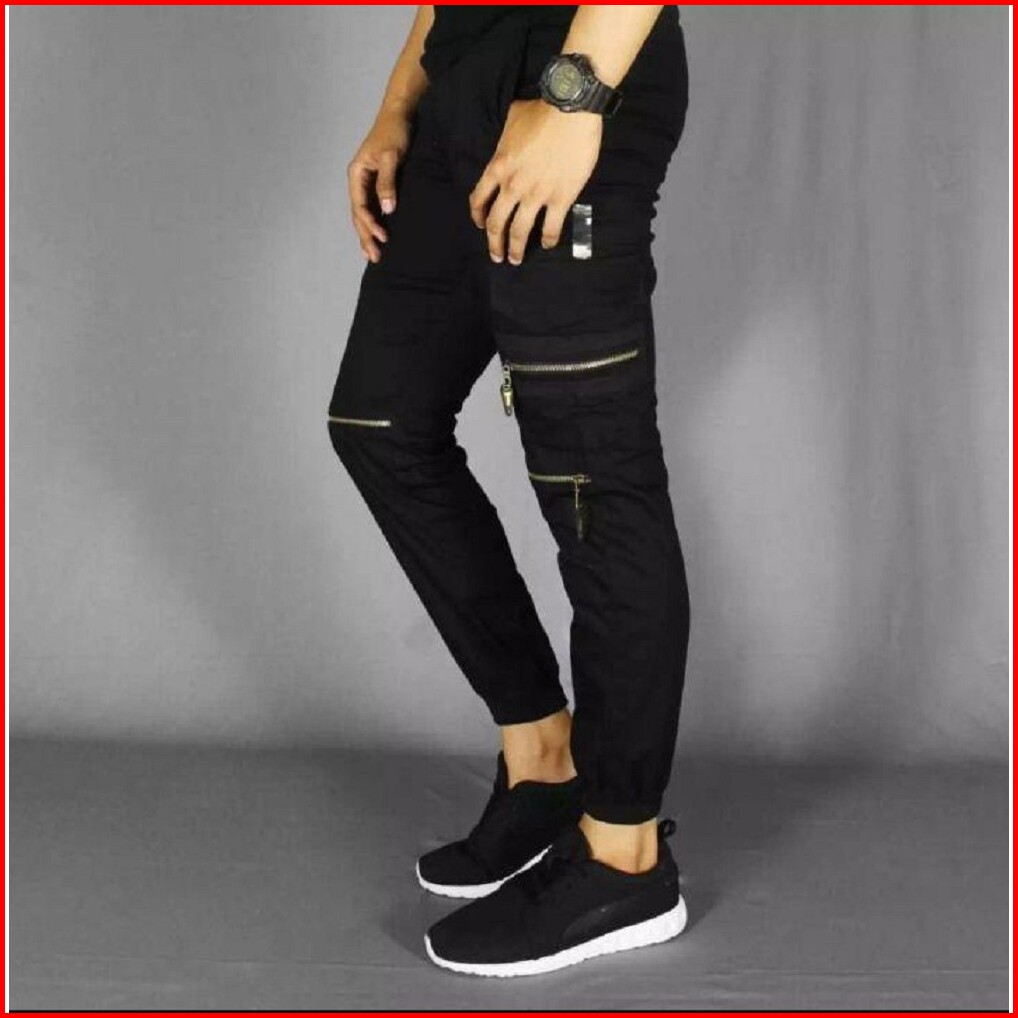 Atjin- Celana Joger Pria Model Biker Risleting 4 Titik Katun Stretch