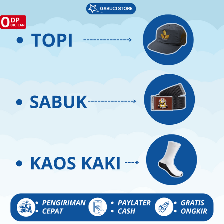 ATRIBUT PERLENGKAPAN SERAGAM SEKOLAH SD SMP SMA TOPI DASI SABUK KAOS KAKI KUALITAS PREMIUM