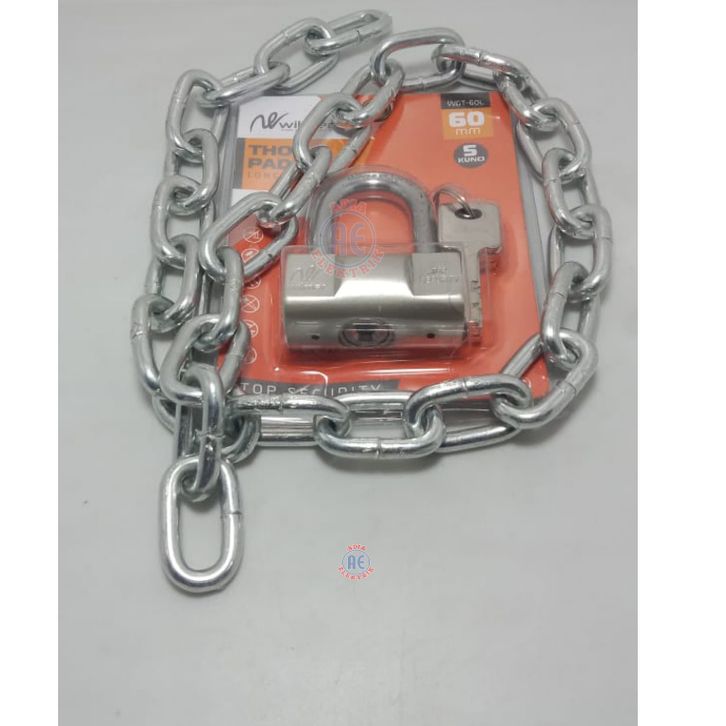 Gembok Anti Maling Paket Rantai Besi kapal + Gembok 60mm Anti Maling / Rantai Besi 6mm / Gembok Kunci Rumah Pagar Seped