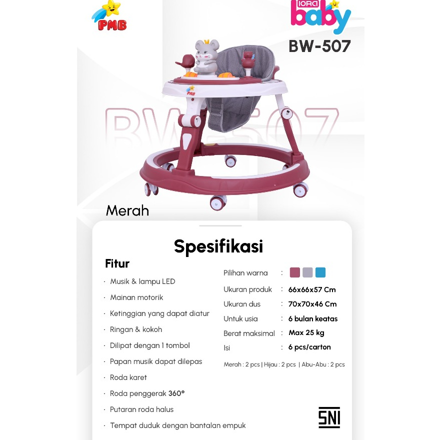 Baby Walker PMB BW 507 IORA BABY BW507 Alat Bantu Jalan Bayi