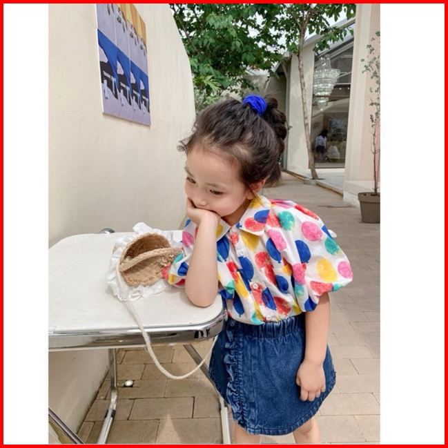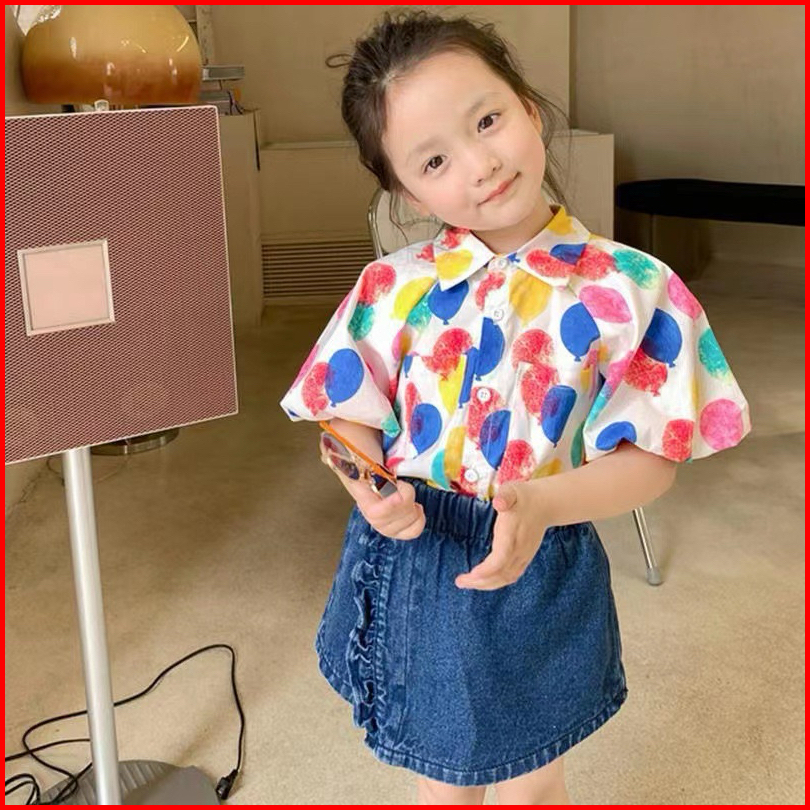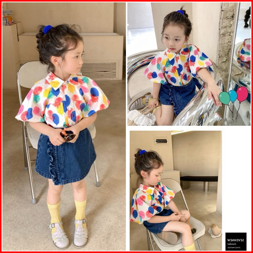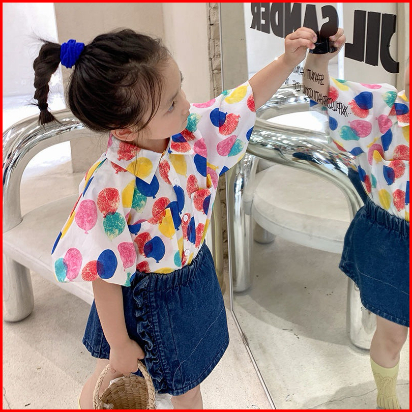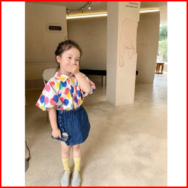 2-10tahun Setelan Rok Celana Jeans Kemeja Balon Baju Anak Perempuan Colorfull