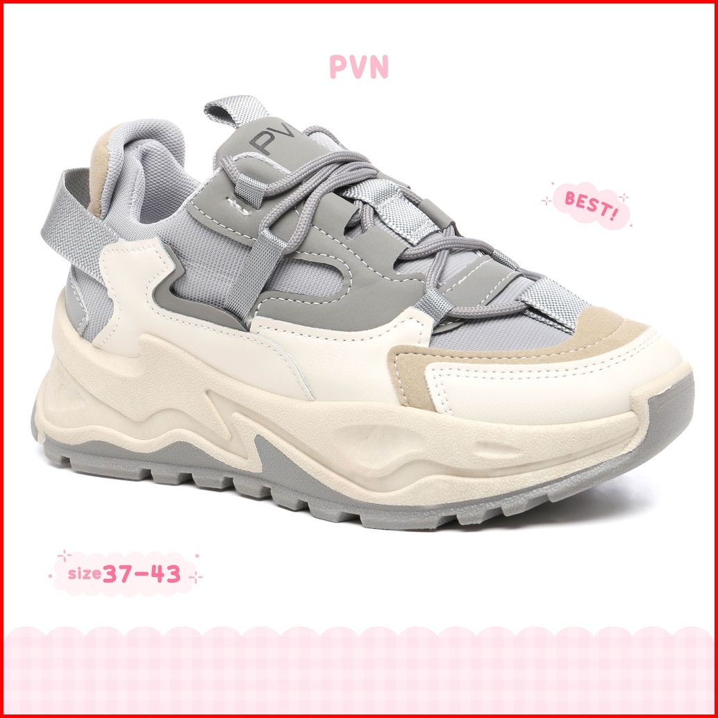 Pvn Jungkook Sepatu Sneakers Wanita Sport Shoes Grey Krem 129