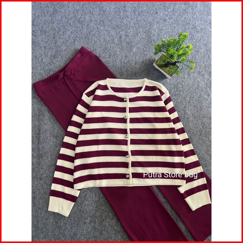 One Set Calya Outer Cardi Crop Kulot Rajut Premium