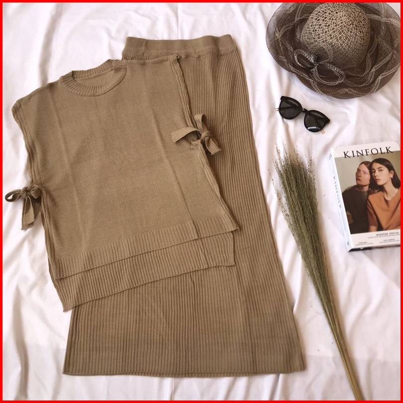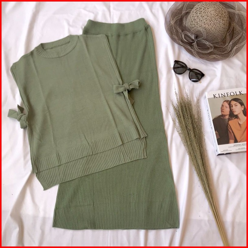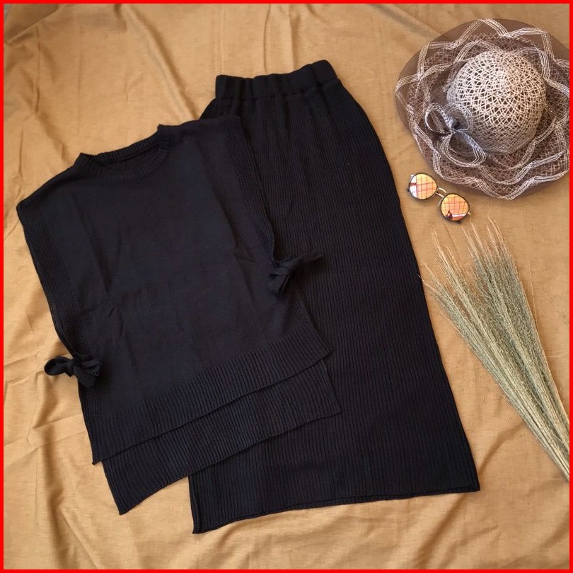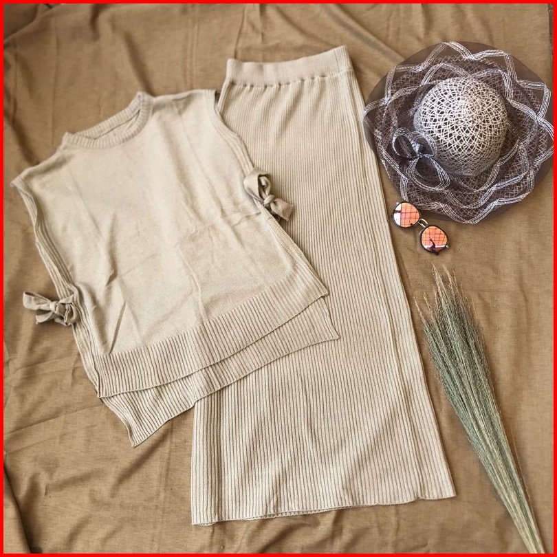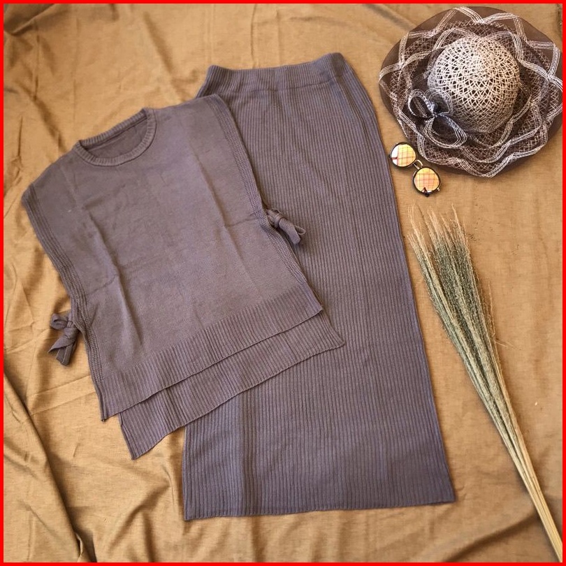 One Set Pashion Wanita Rompi Rajut Tali Shypa Rok Span Rajut Premium