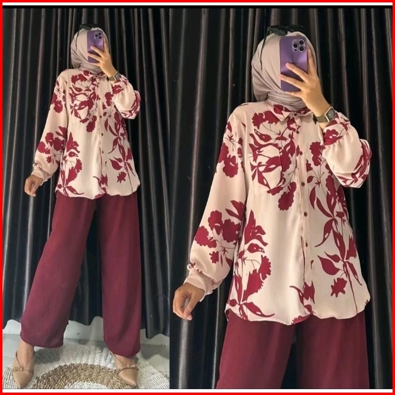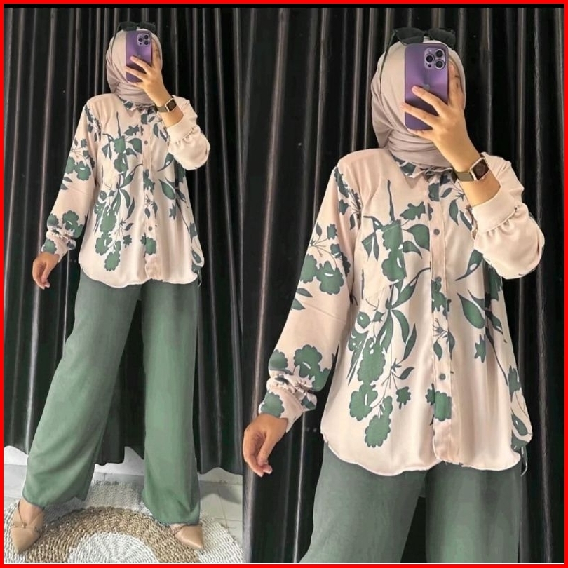 Mylla Flower One Set Kulot Setelan Bunga Kombinasi Crinkle Airflow
