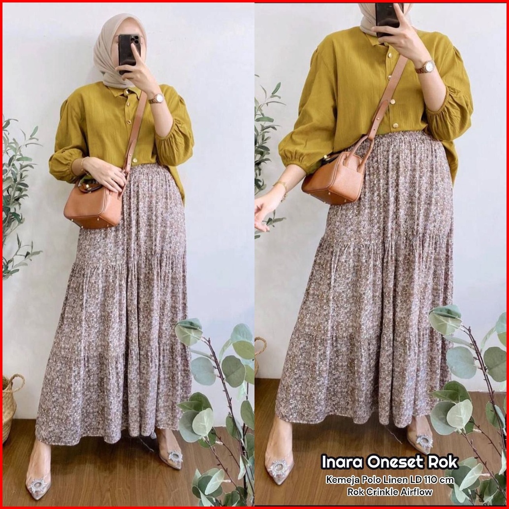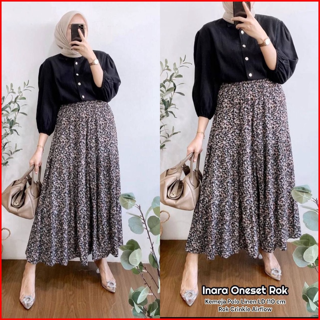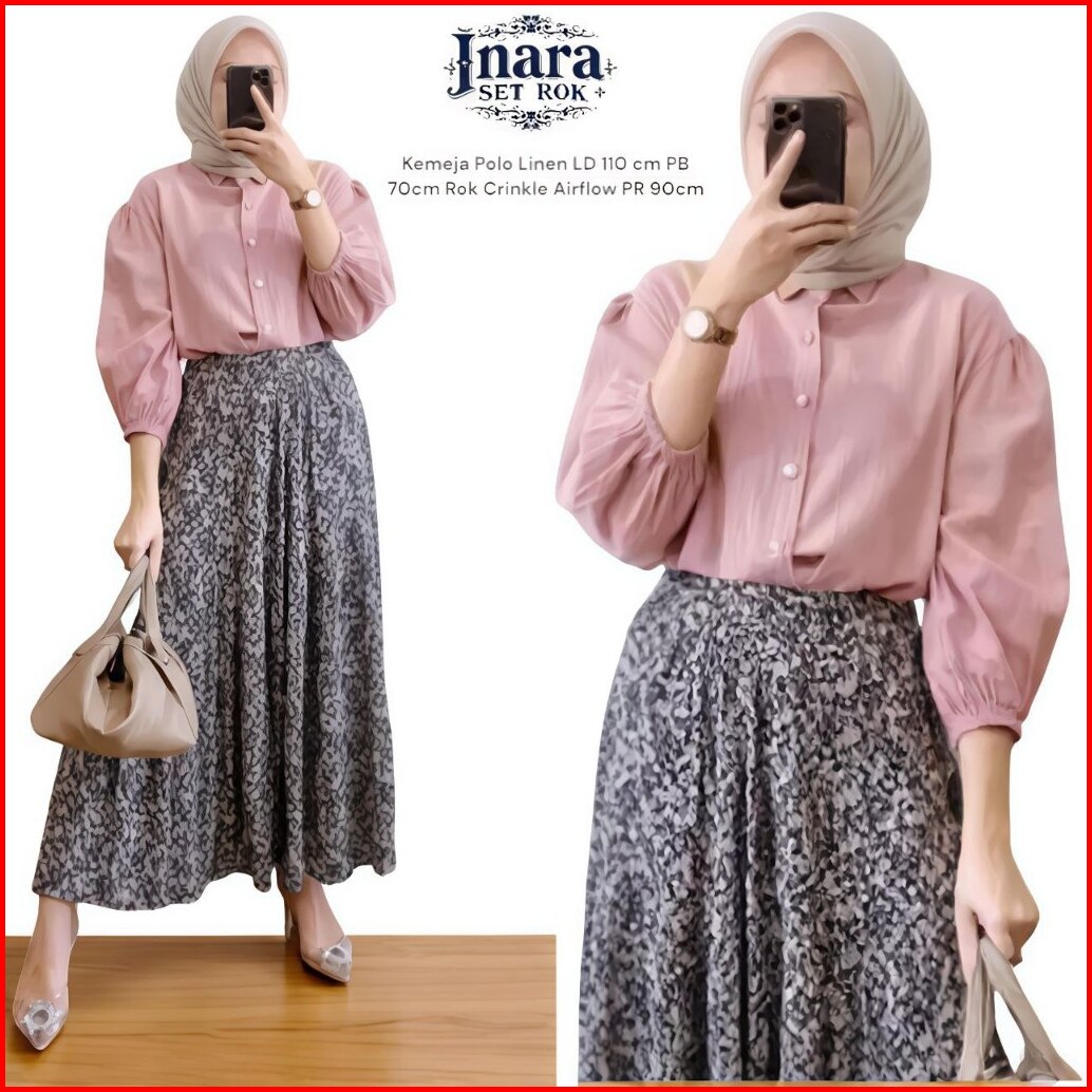 Inara Set Rok - One Set Wanita Kekinian Kemeja Linen Premium Setelan Wanita Rok Crinkle Airflow