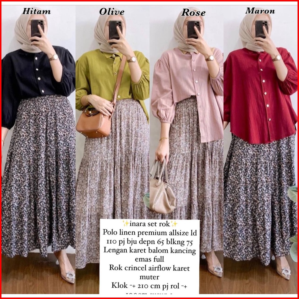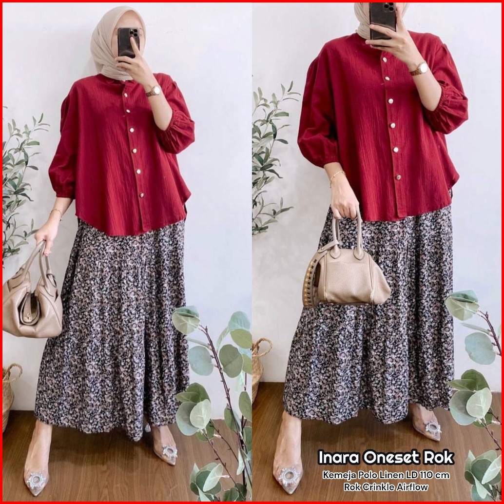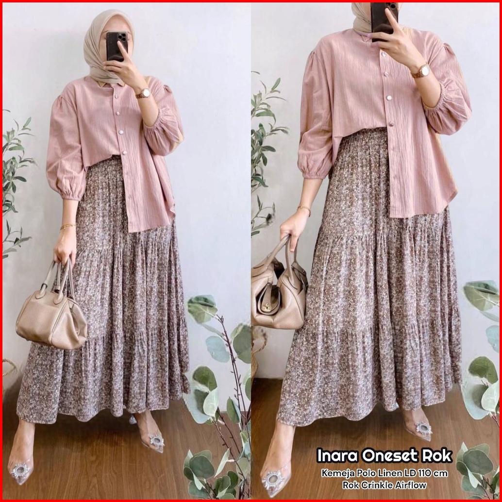 Inara Set Rok - One Set Wanita Kekinian Kemeja Linen Premium Setelan Wanita Rok Crinkle Airflow