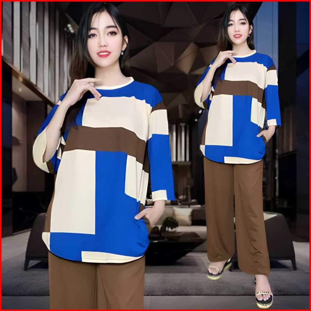 Myesha Ld 120 Ayda Ld 140 Setelan Wanita Celana Lurus Dan Atasan Oval Belahan Kiri Dan Kanan Oversize Wanita Celana Luru