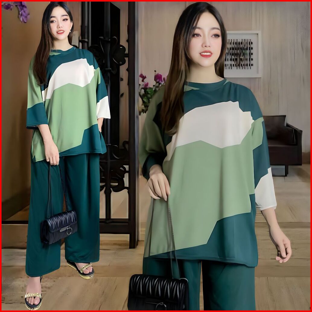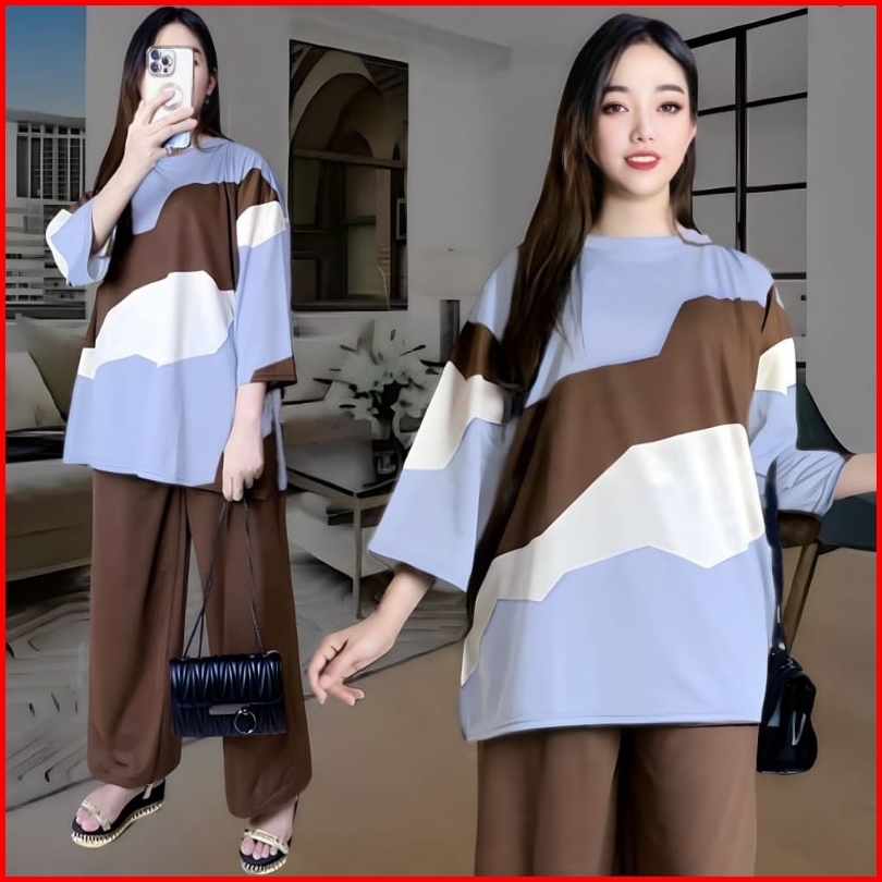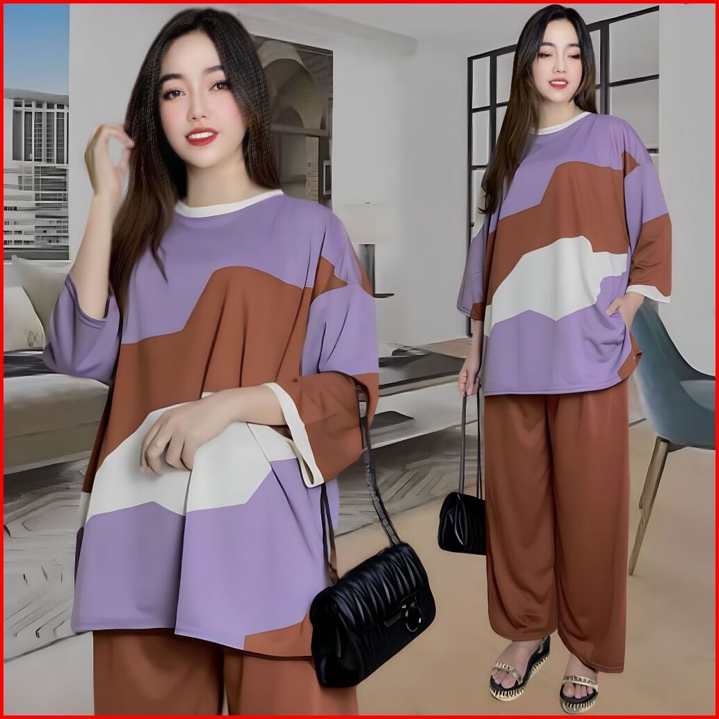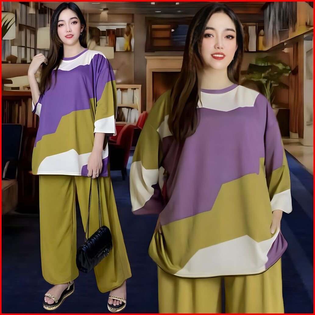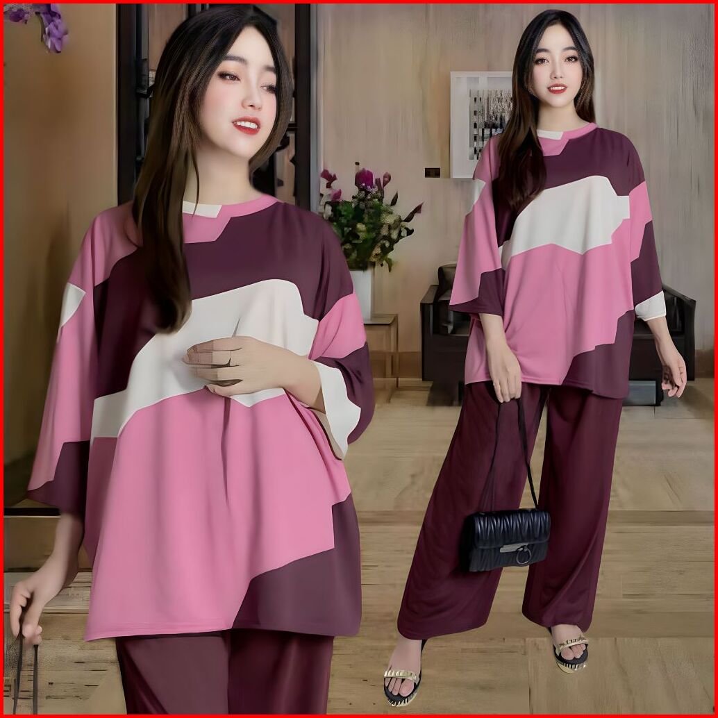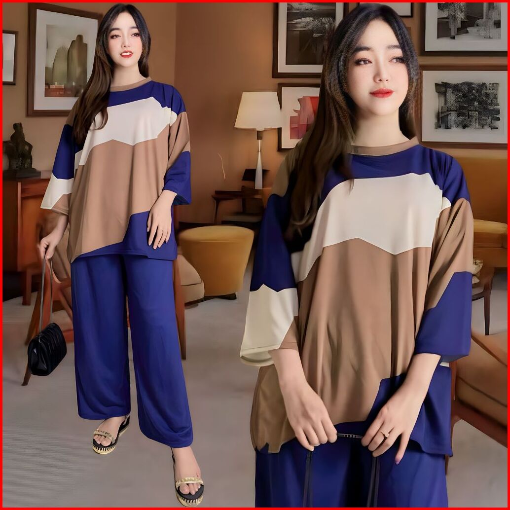A8d1 Setelan Wanita Jumbo Ld 120 Ld 140 Atasan Wanita Dan Celana Kulot Wanita Baju Oversize Dewasa Motif Celana Panjang