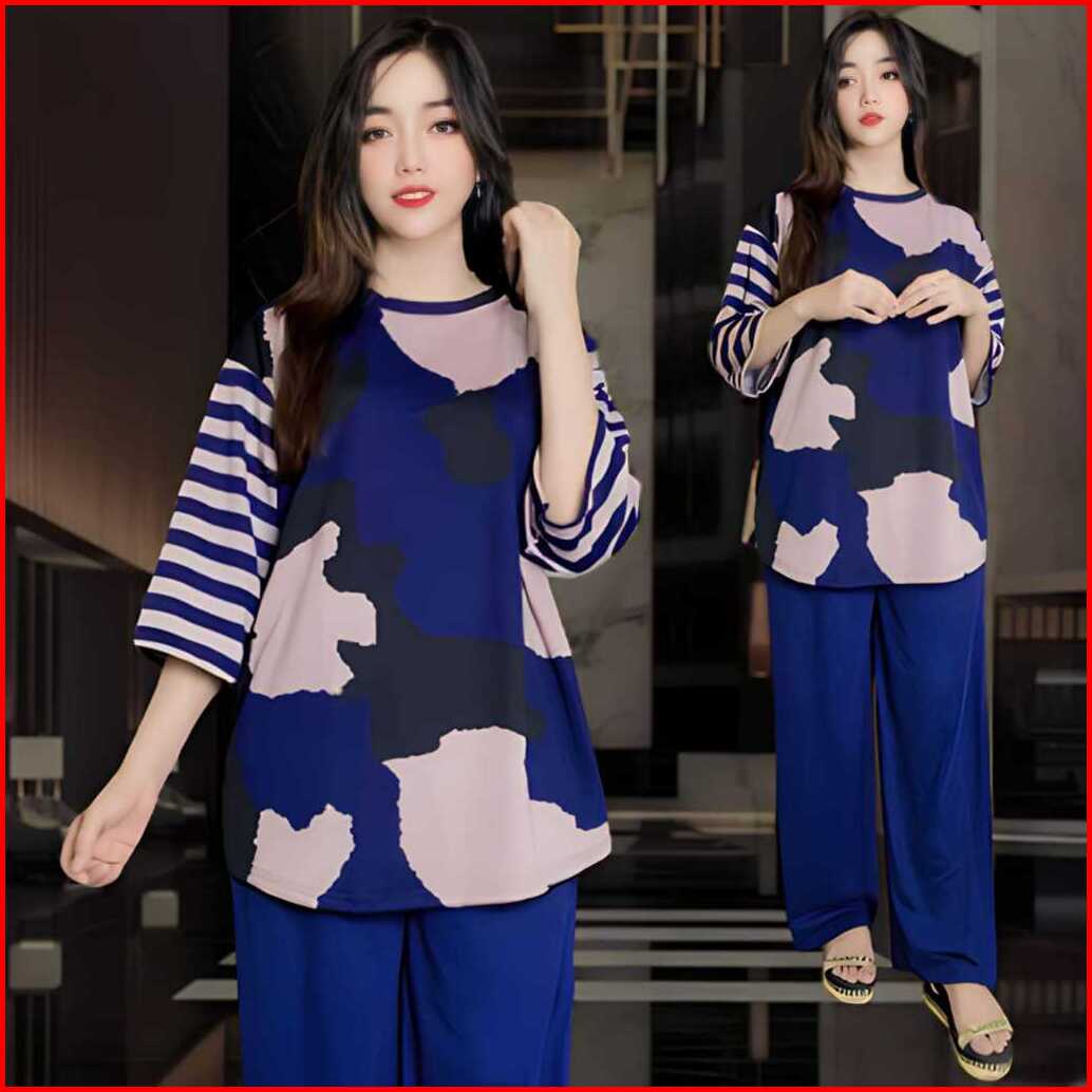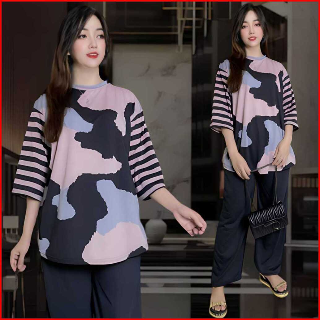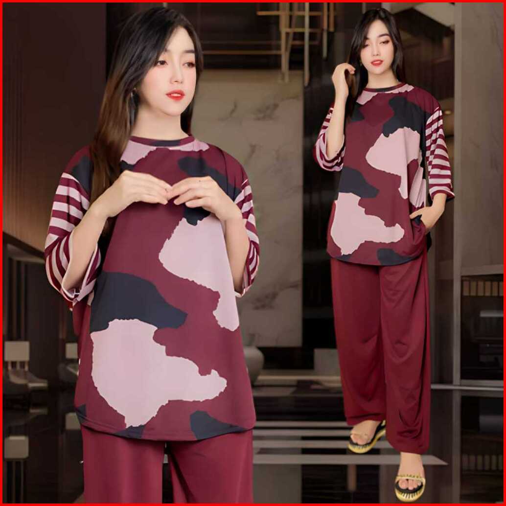 Gaitha Ld 120 Setelan Wanita Celana Dan Atasan Oversize Wanita Baju Kantong Karet Kaos Dewasa Motif Panjang