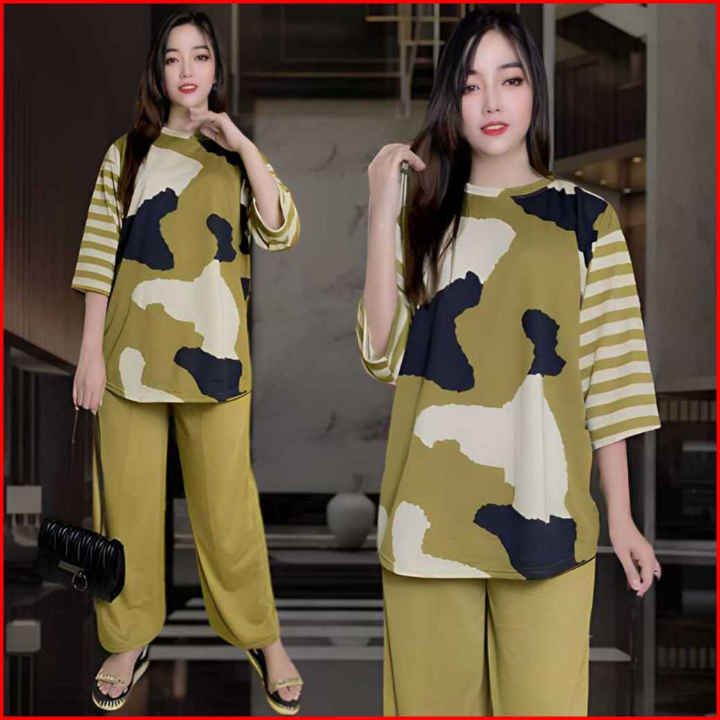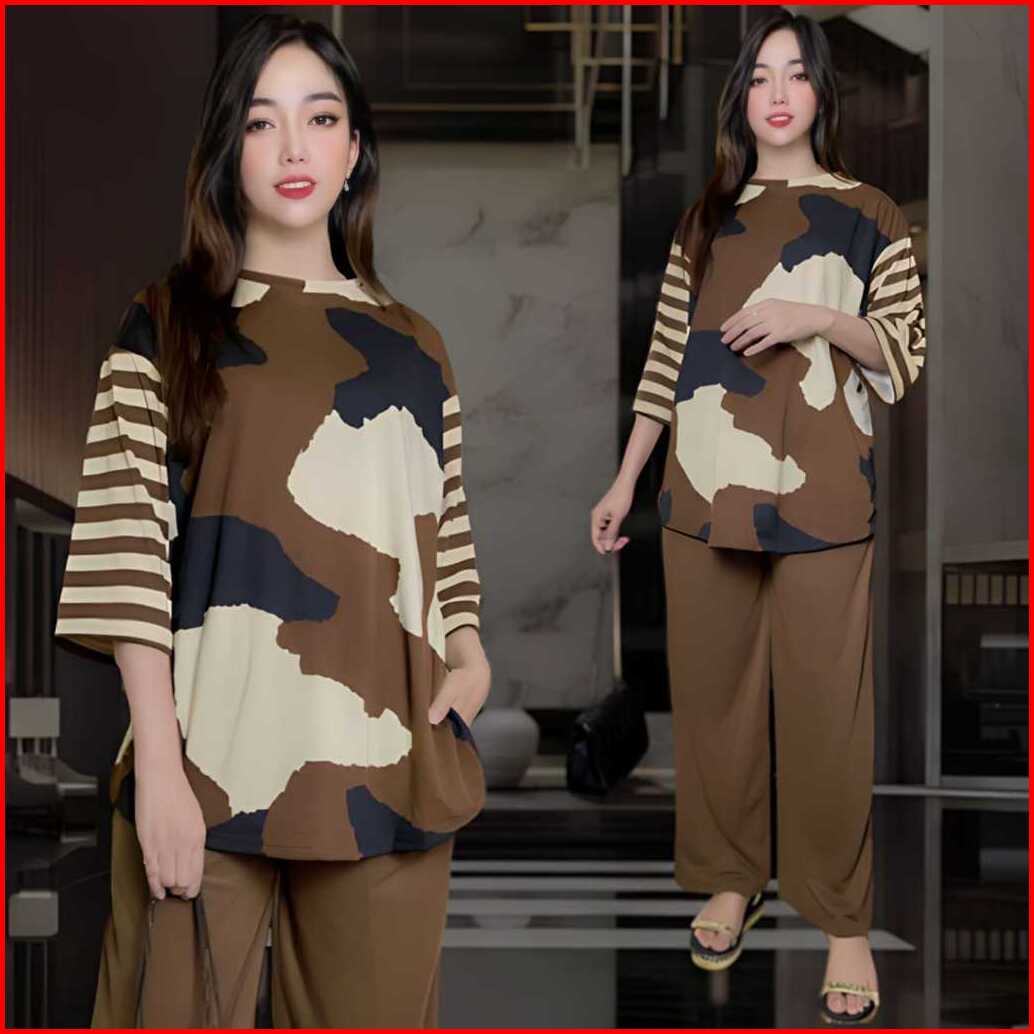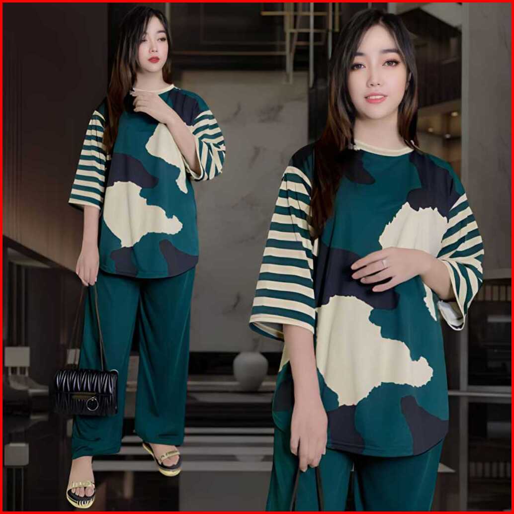 Gaitha Ld 120 Setelan Wanita Celana Dan Atasan Oversize Wanita Baju Kantong Karet Kaos Dewasa Motif Panjang