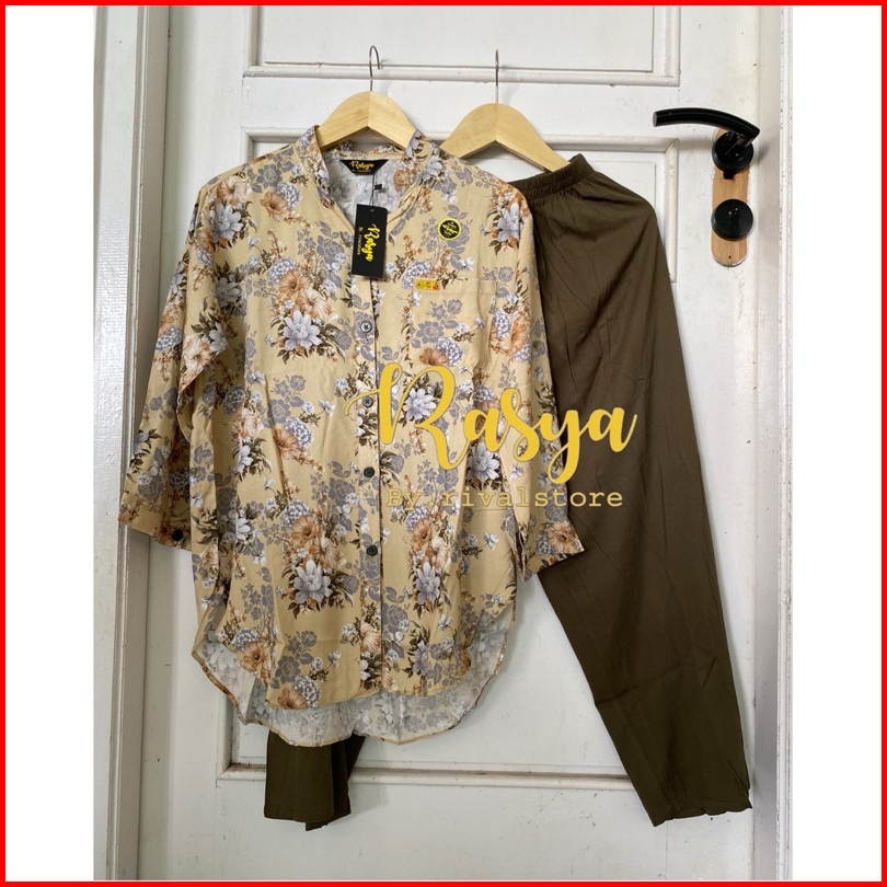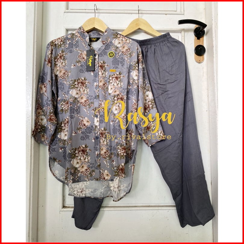 Setelan Wanita Kombinasi Motif Abstrak Ld 120 Rayon Twill Setcel Rasya Terbaru 2024