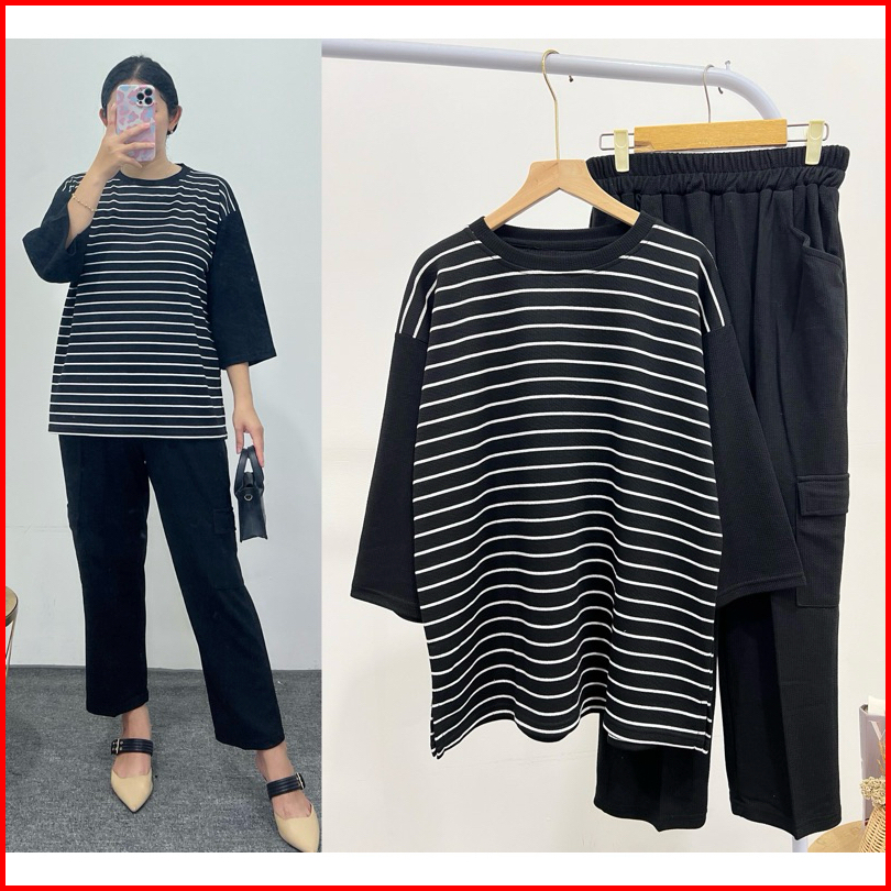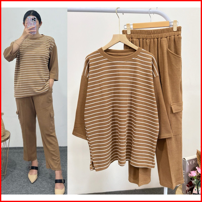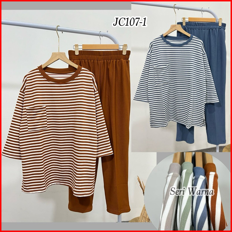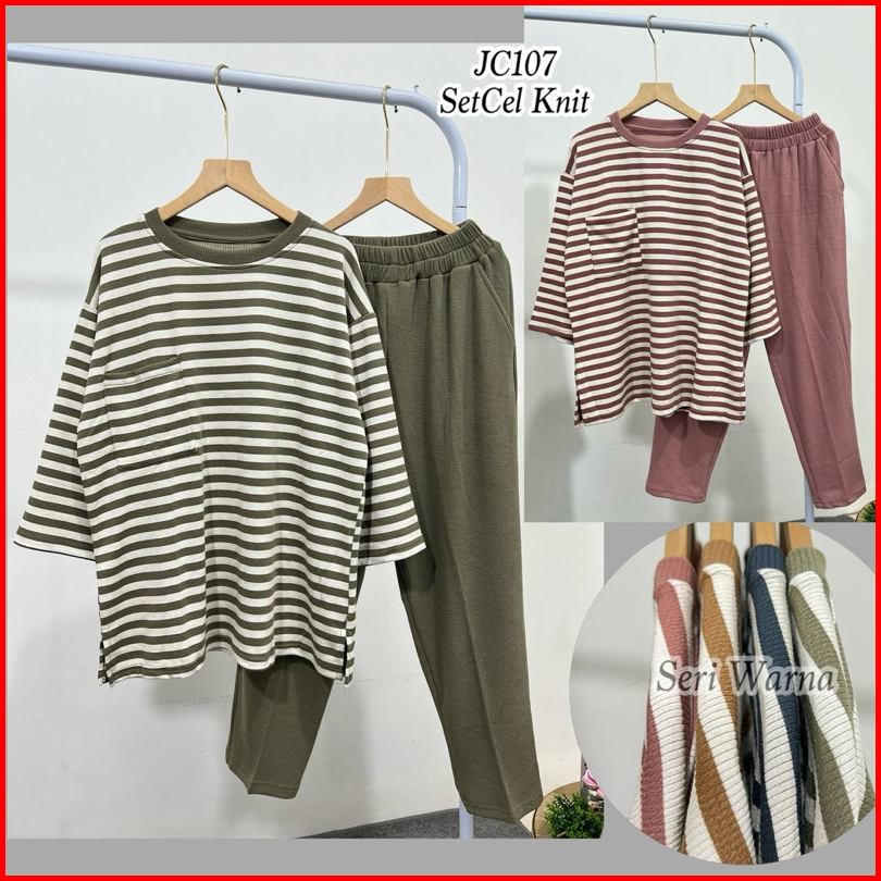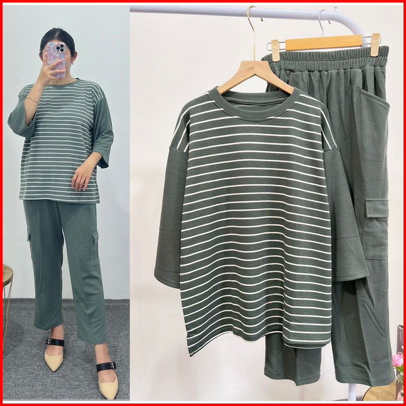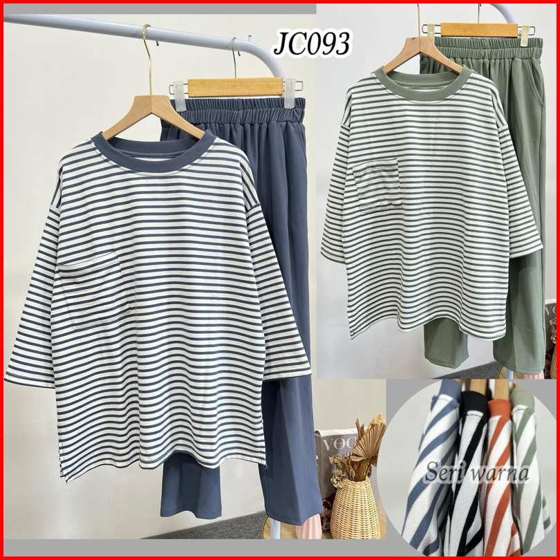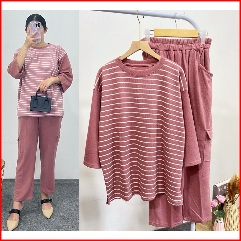 Setelan Wanita 7 8 Set Jc Setelan Pocket One Set Salur 7 8 Saku