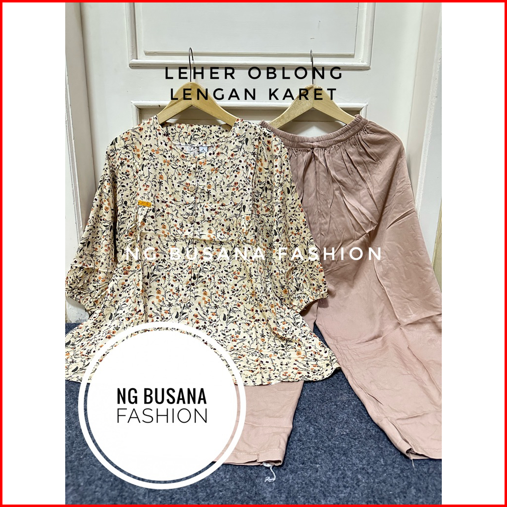 Setelan Wanita Terbaru Motif Bunga Bahan Rayon Premium One Set Rayon Premium Jumbo