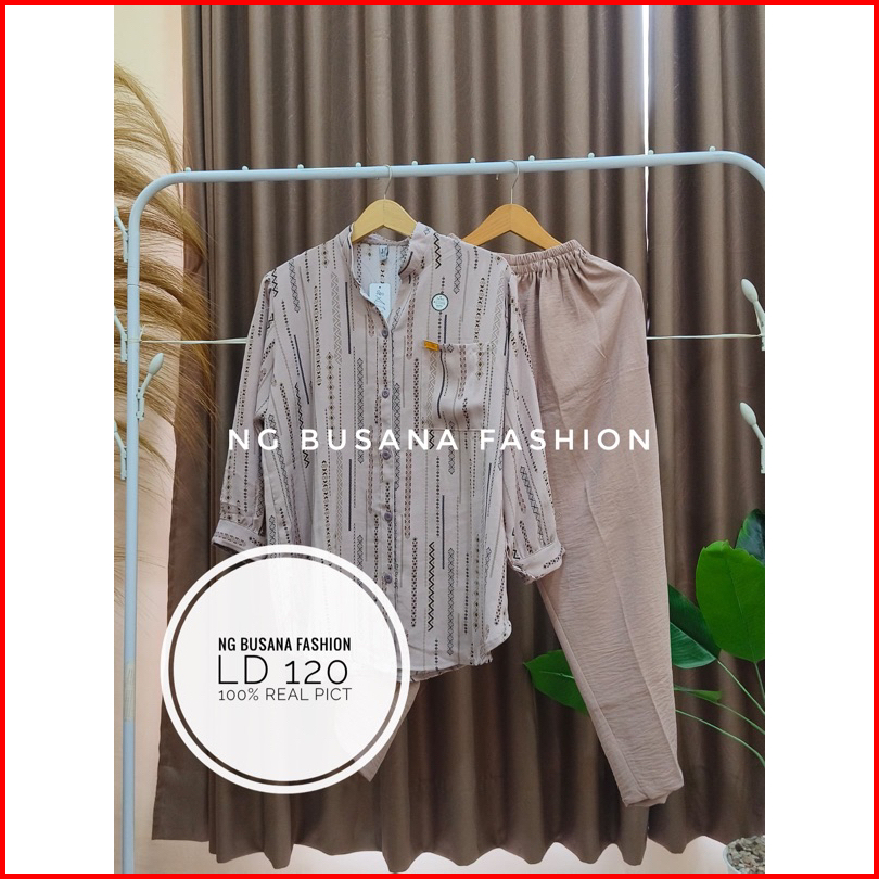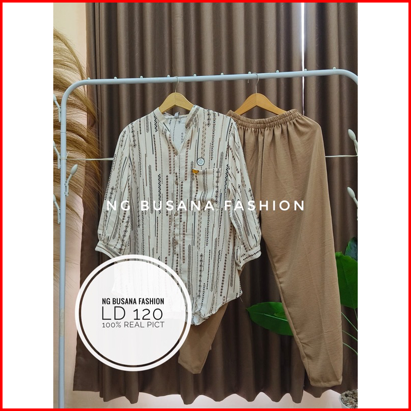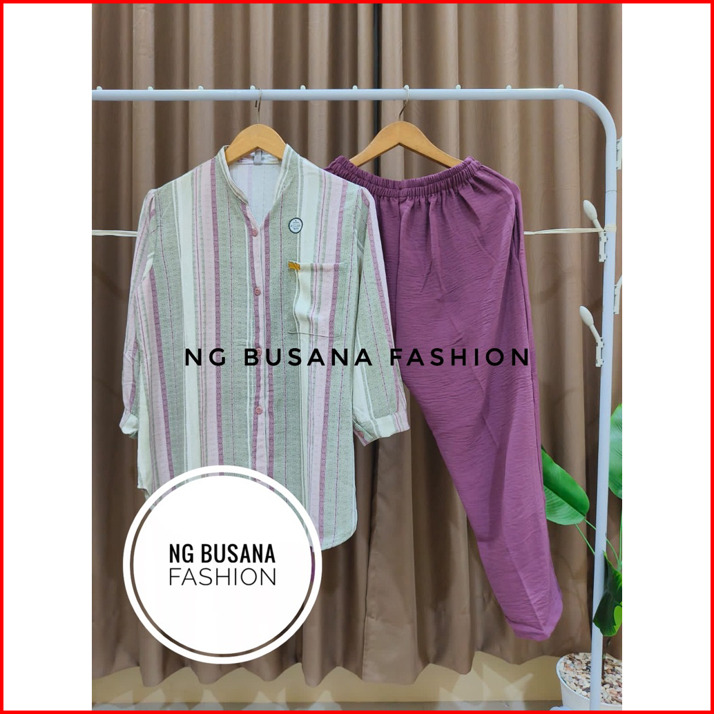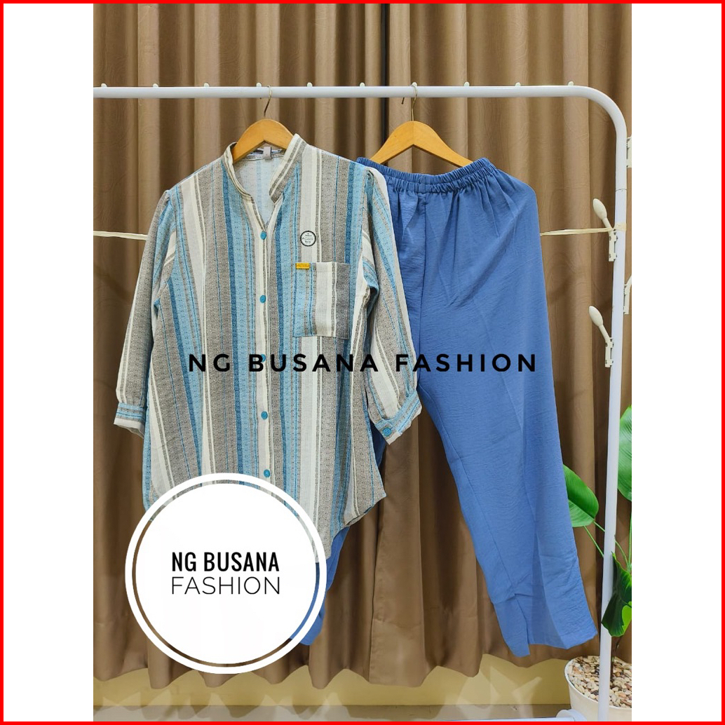 Oneset Wanita Terbaru Setelan Botega Kombinasi Motif Bahan Crinkle Airflow Adem Nyaman Dipakai Ukuran Jumbo
