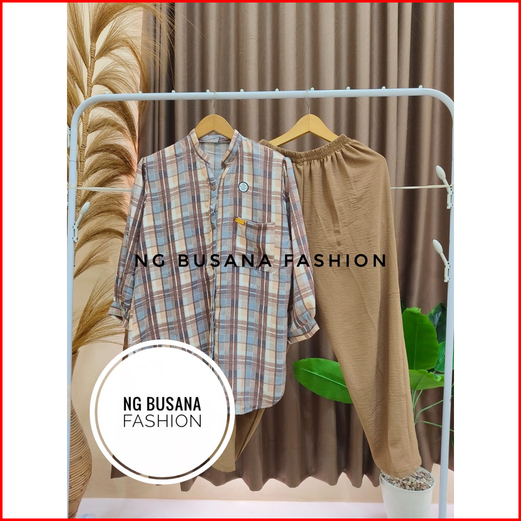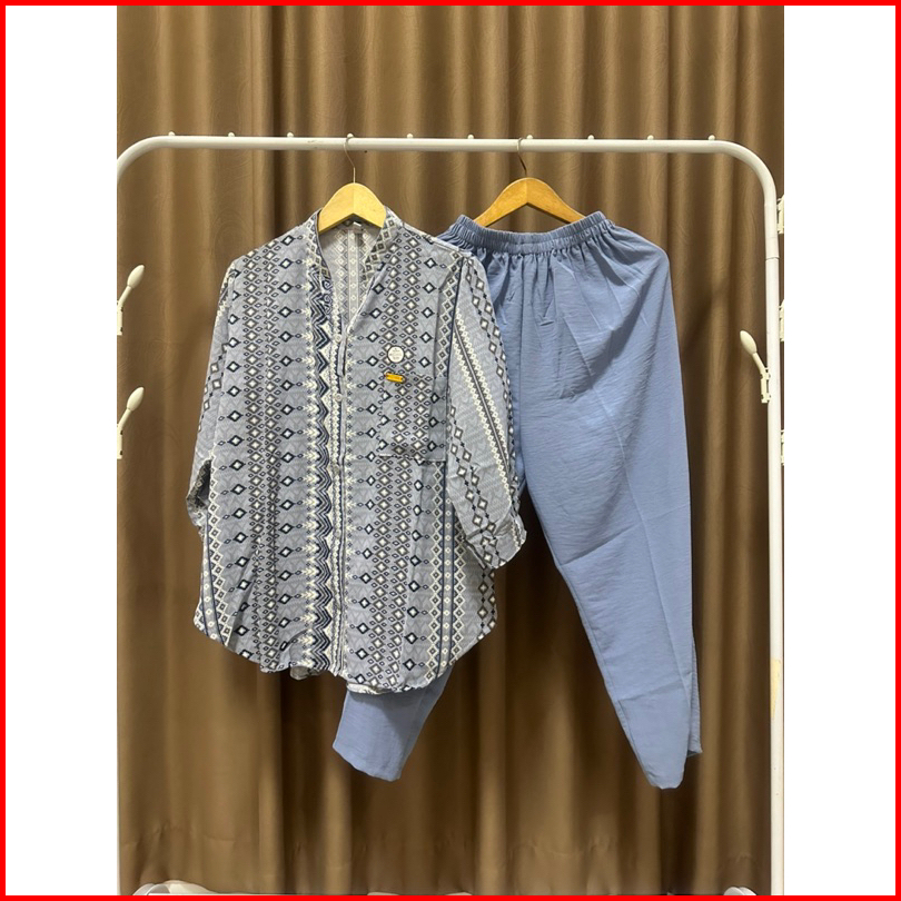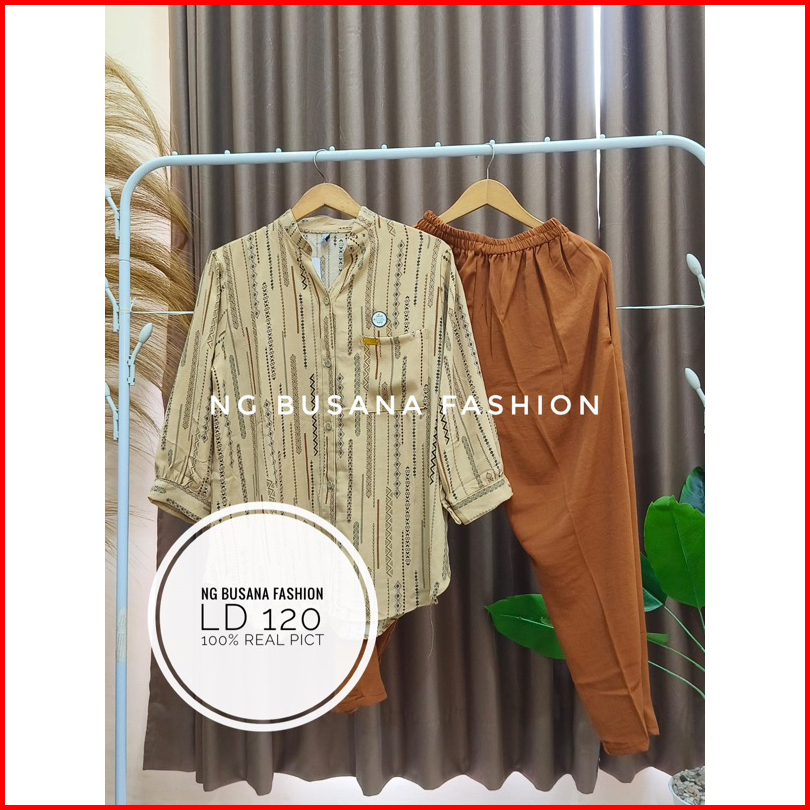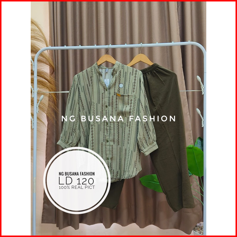 Oneset Wanita Terbaru Setelan Botega Kombinasi Motif Bahan Crinkle Airflow Adem Nyaman Dipakai Ukuran Jumbo