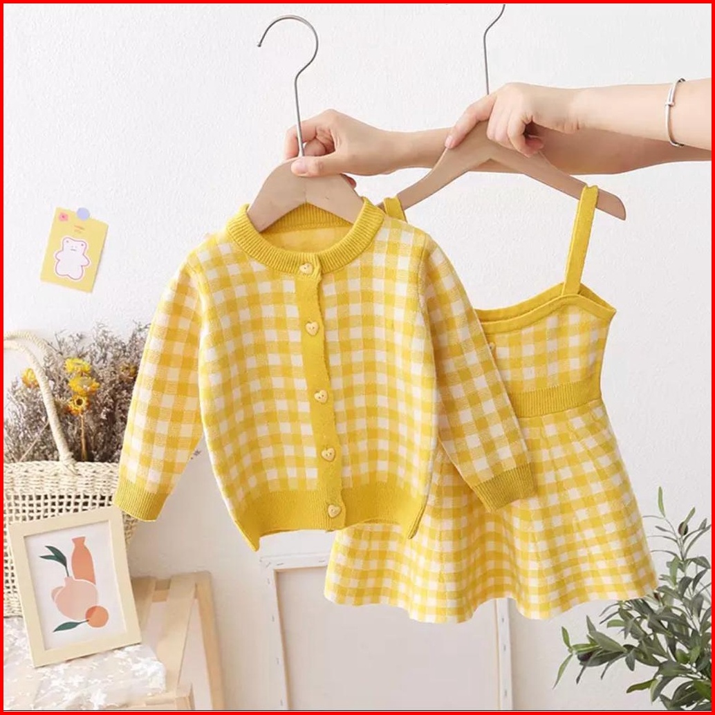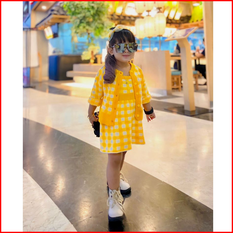 Zahra - Lunair One Set Setelan Dres Cardy Rajut Premium Anak Umur 1 - 6 Tahun