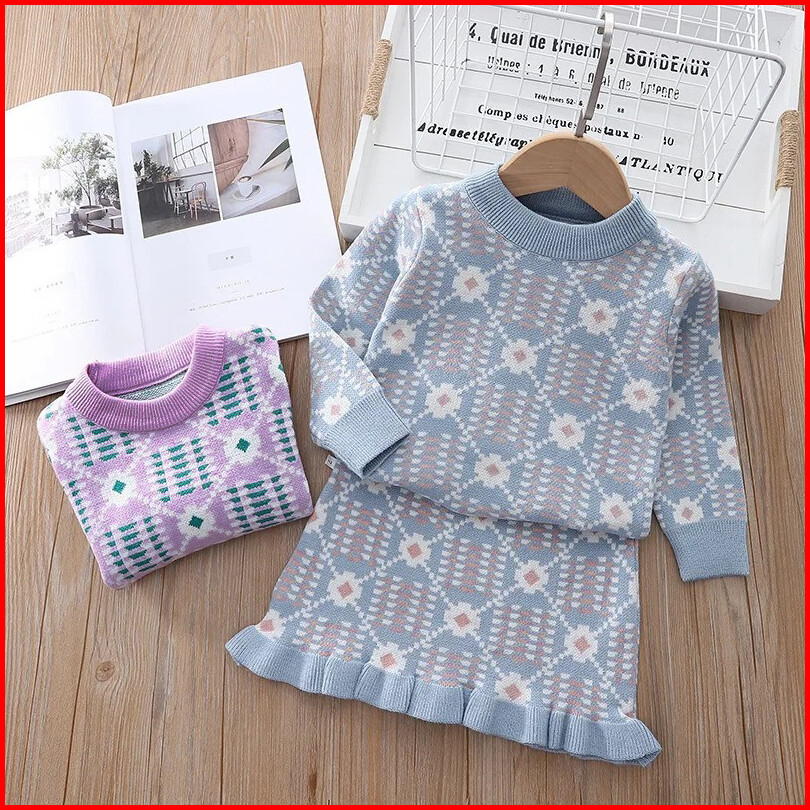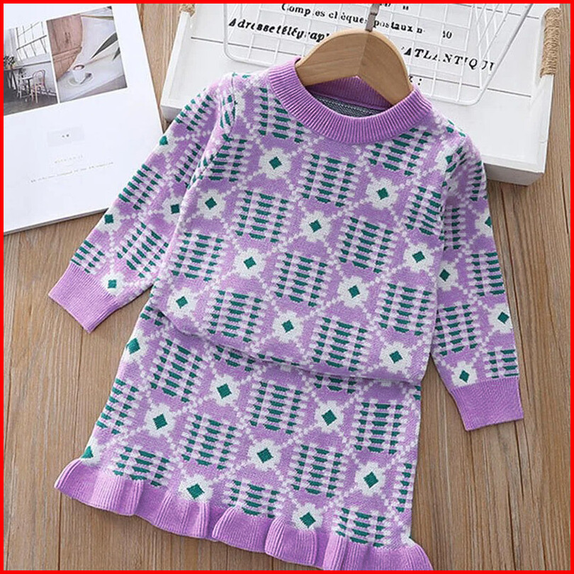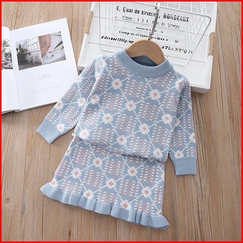 Zahra - Valeta Setelan Anak Perempuan Korean Pakaian Rajut Premium Motif Rok Umur 1-6 Tahun