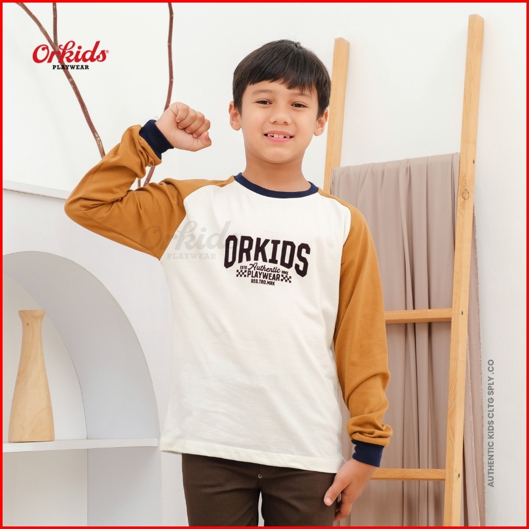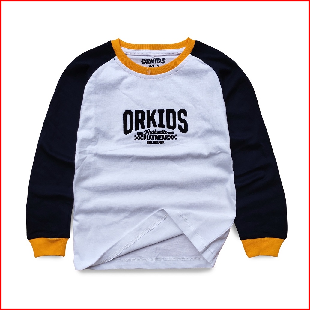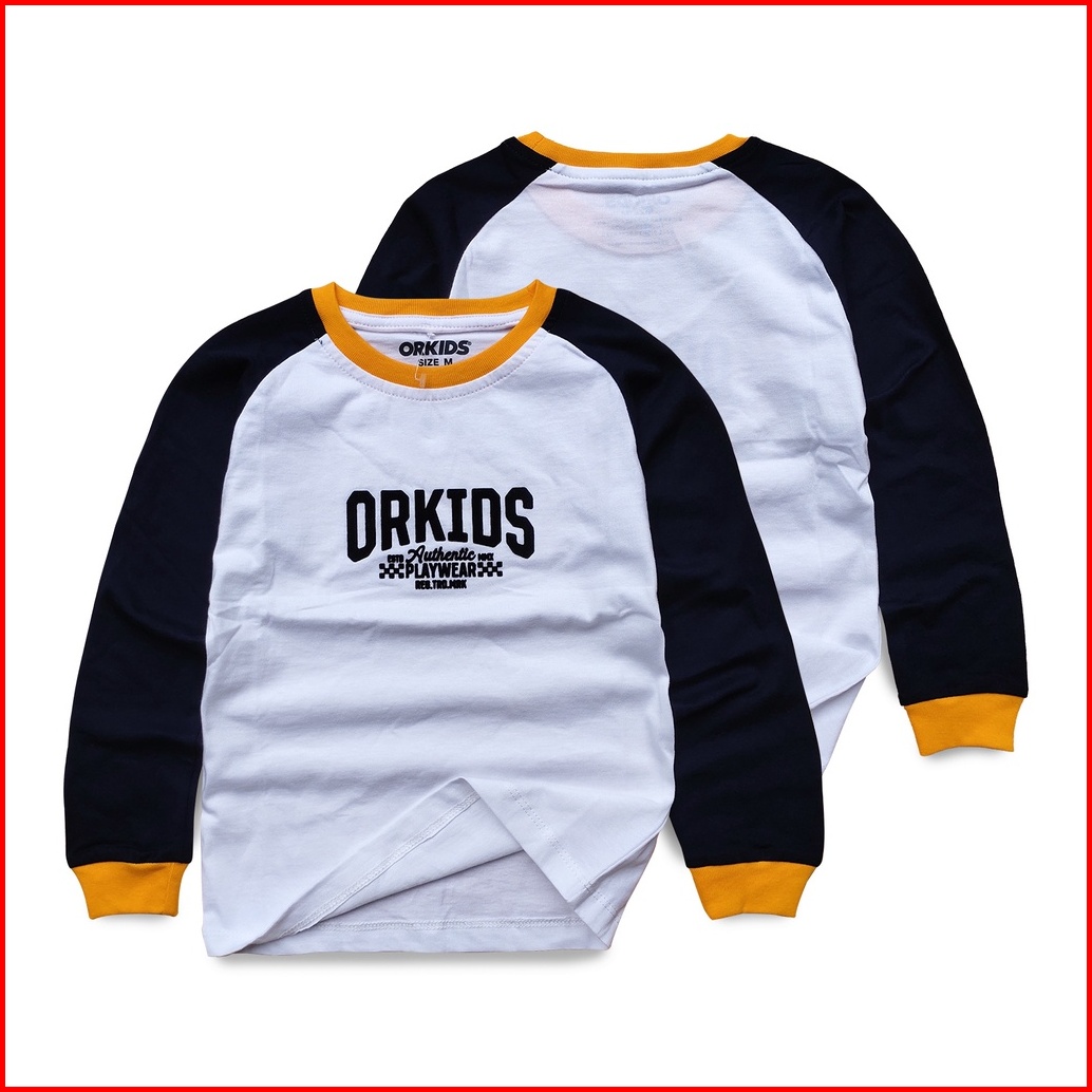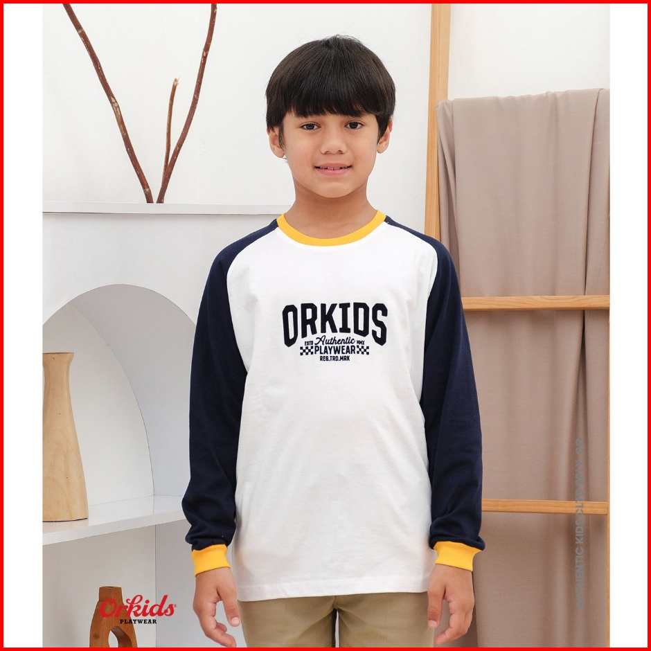 Orkids Baju Kaos Lengan Panjang Anak Laki-laki Umur 1 - 12 Tahun Bahan Katun 24s Tazer White Navy