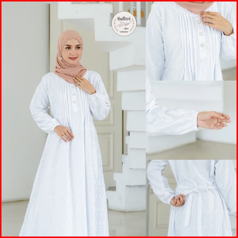 Mecca Dress Gamis Putih Bersih Thawaf Umroh Ihram Manasik Haji Bordir Motif Timbul By Safitri Fashion