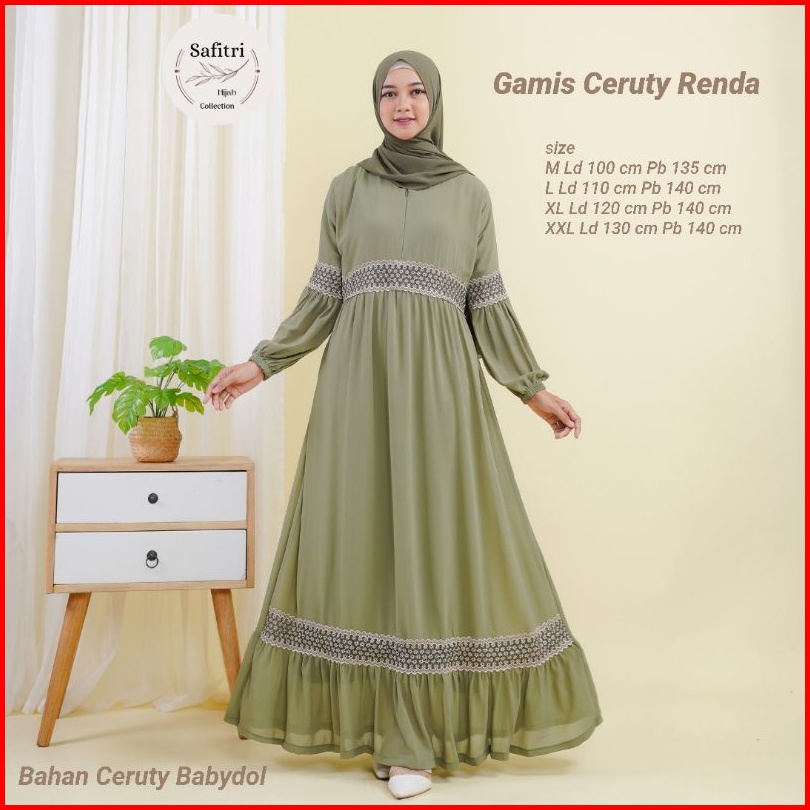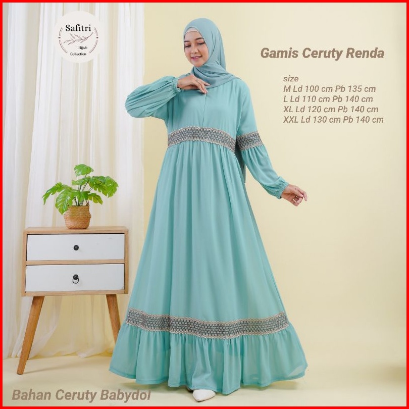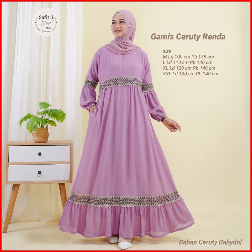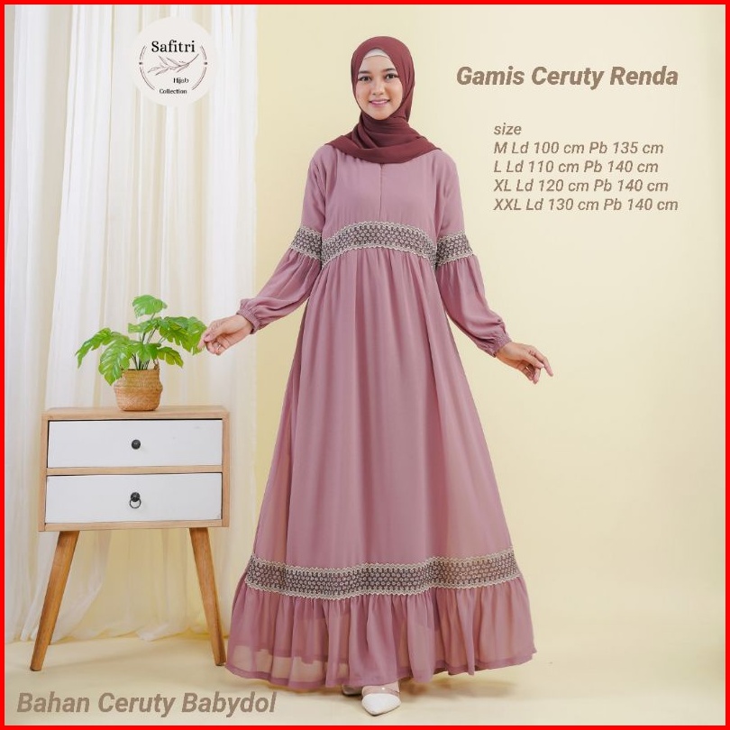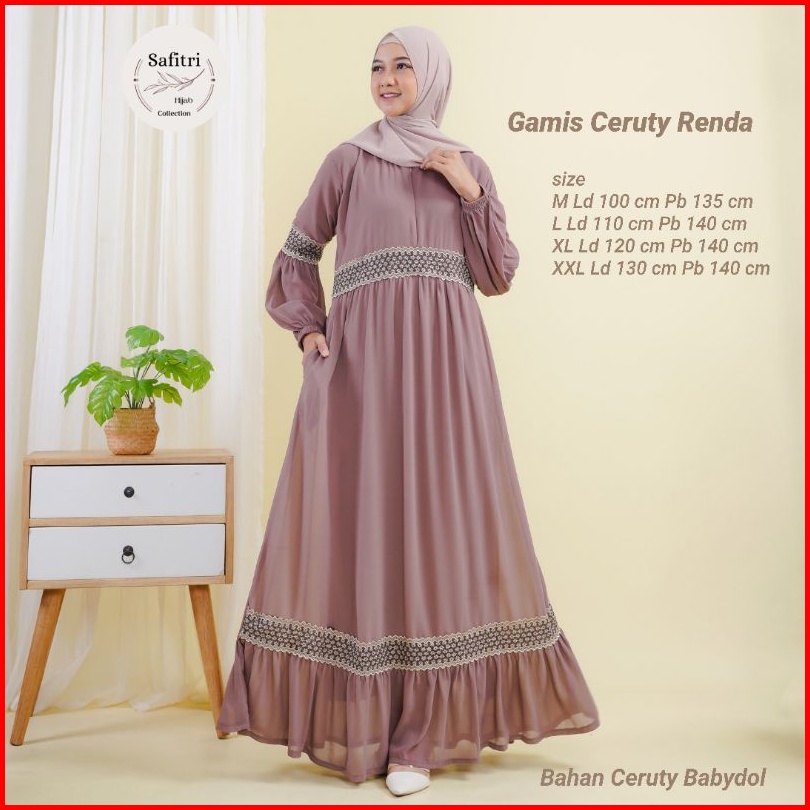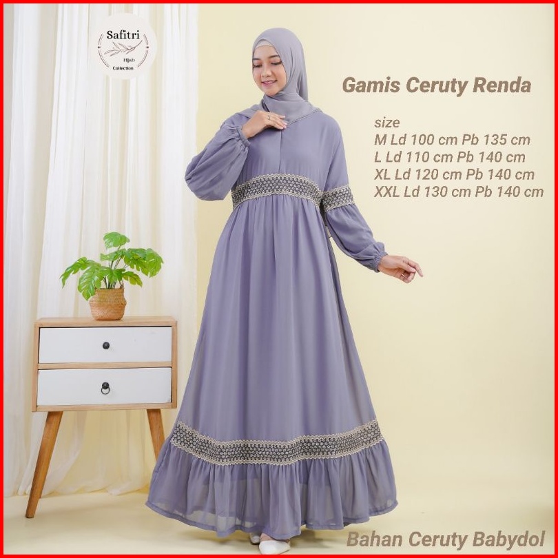Gamis Ceruty Renda Bahan Ceruty Babydol By Ori Safitri Size M L Xl Xxl