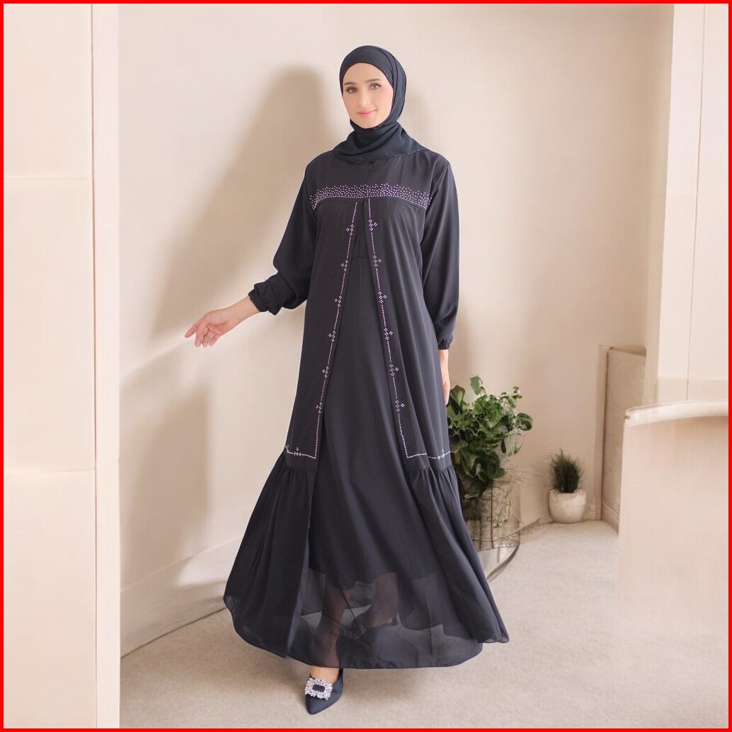 Amie Shop Karina Dress Baju Gamis Bahan Cerutty Babby Doll Mix Swaroski Ukuran Jumbo Xl Xxl