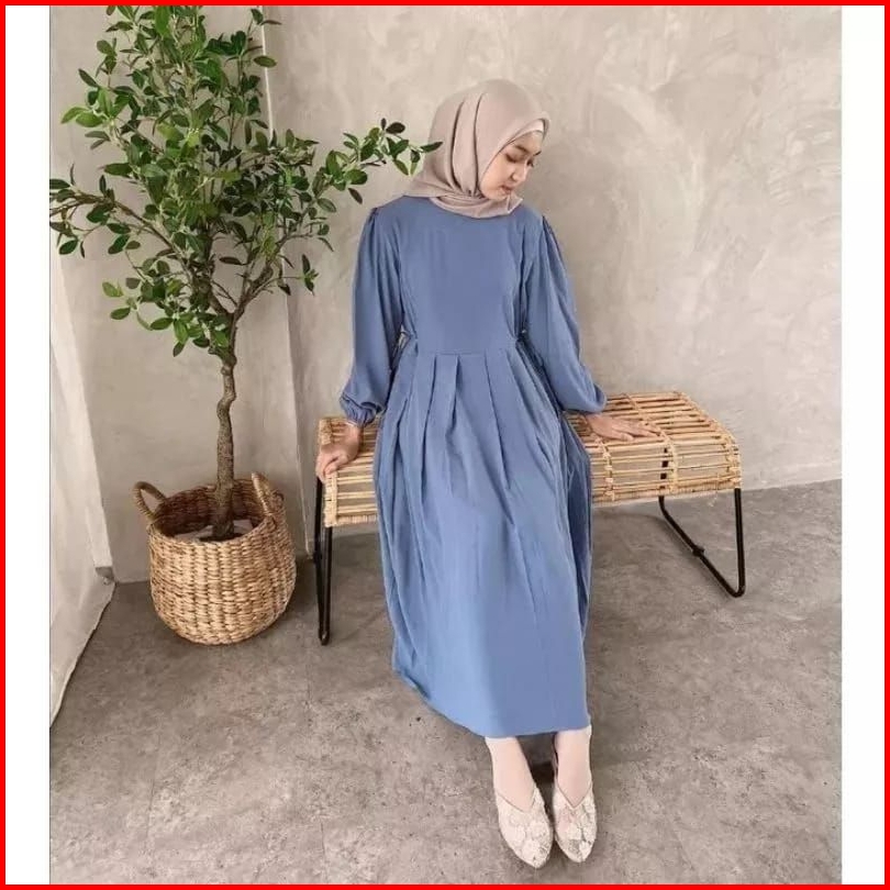 Midi Dress Dress Menyusui Remaja Wanita Dress Busui Crinkel Airflow