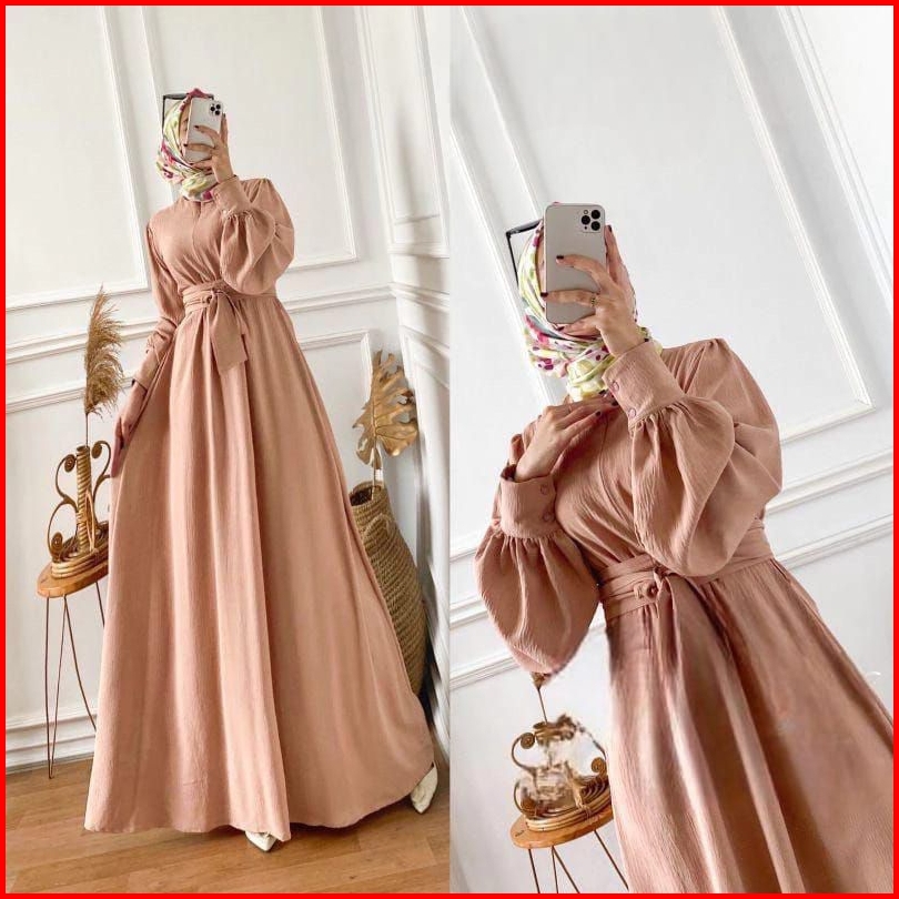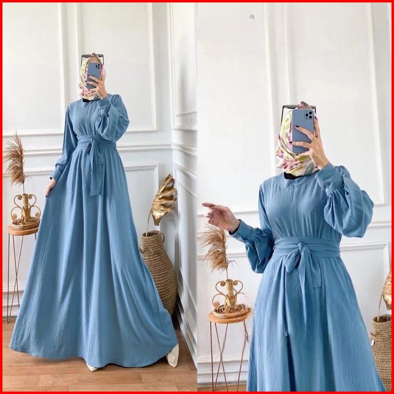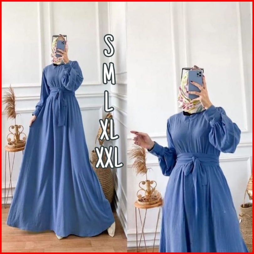 Delisa Dress Remaja Gamis Crinkel Airflow Size S M L Xl Xxl Dress Busui Terbaru