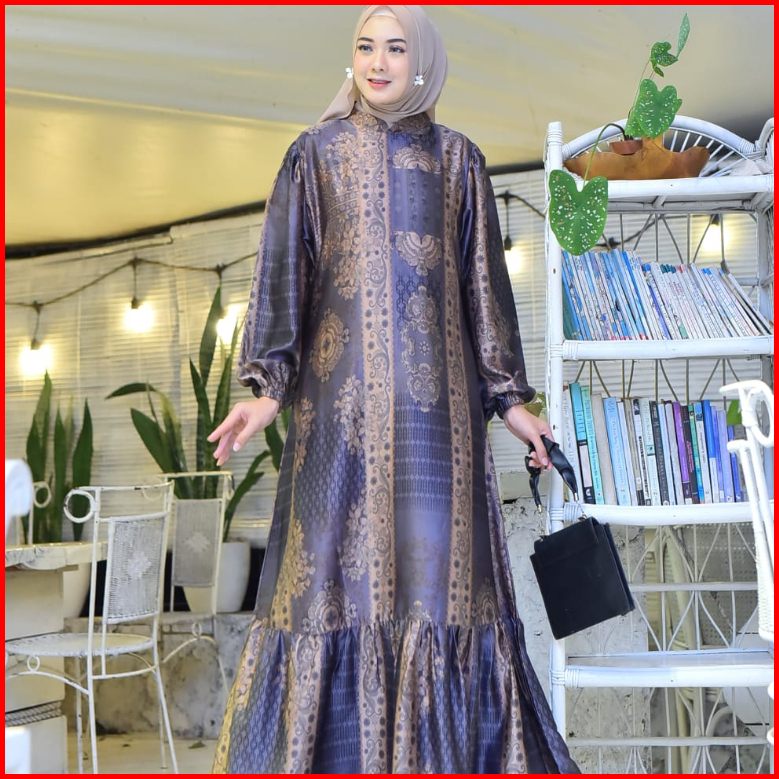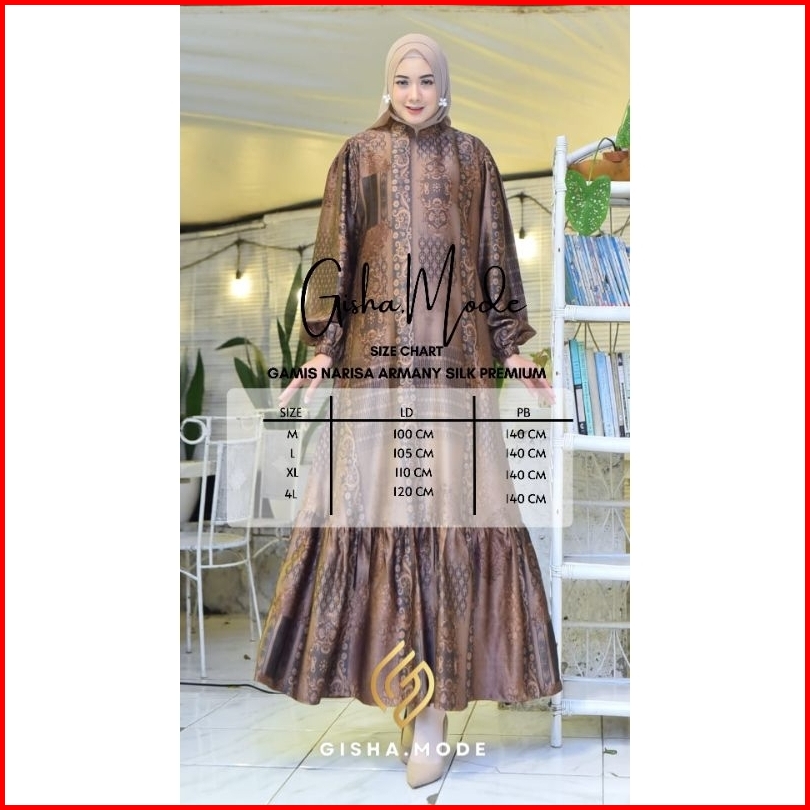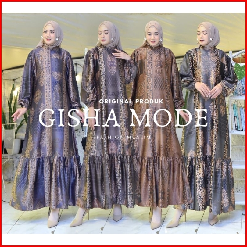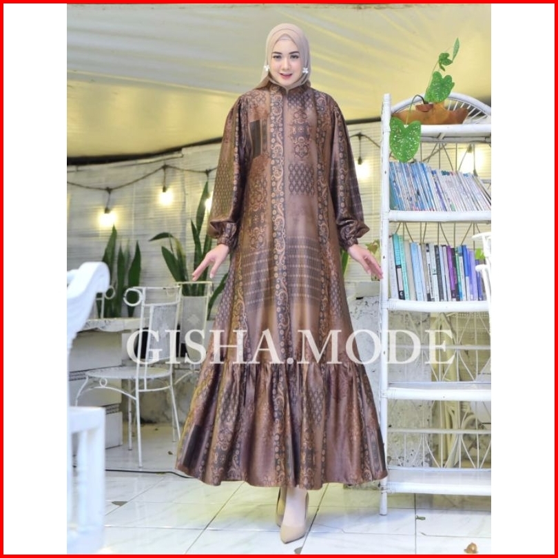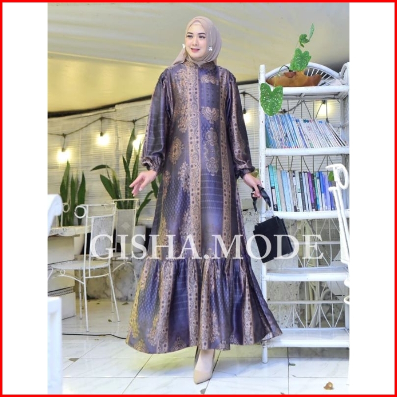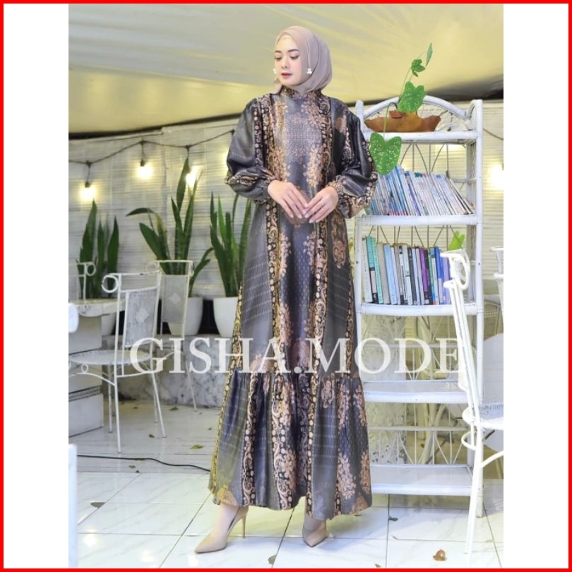 Dres Gamis Narissa Etnik Gisha Original Silk Premium Motif Terbaru Tangan Balon Busui Dress Muslim
