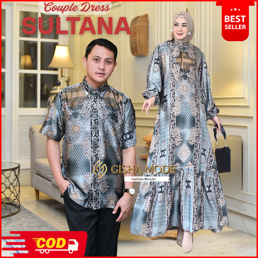 Dress Sultana Etnik Bahan Silk Premium Set Couple Kemeja Motif Terlaris Busui Dress Muslim Terlaris