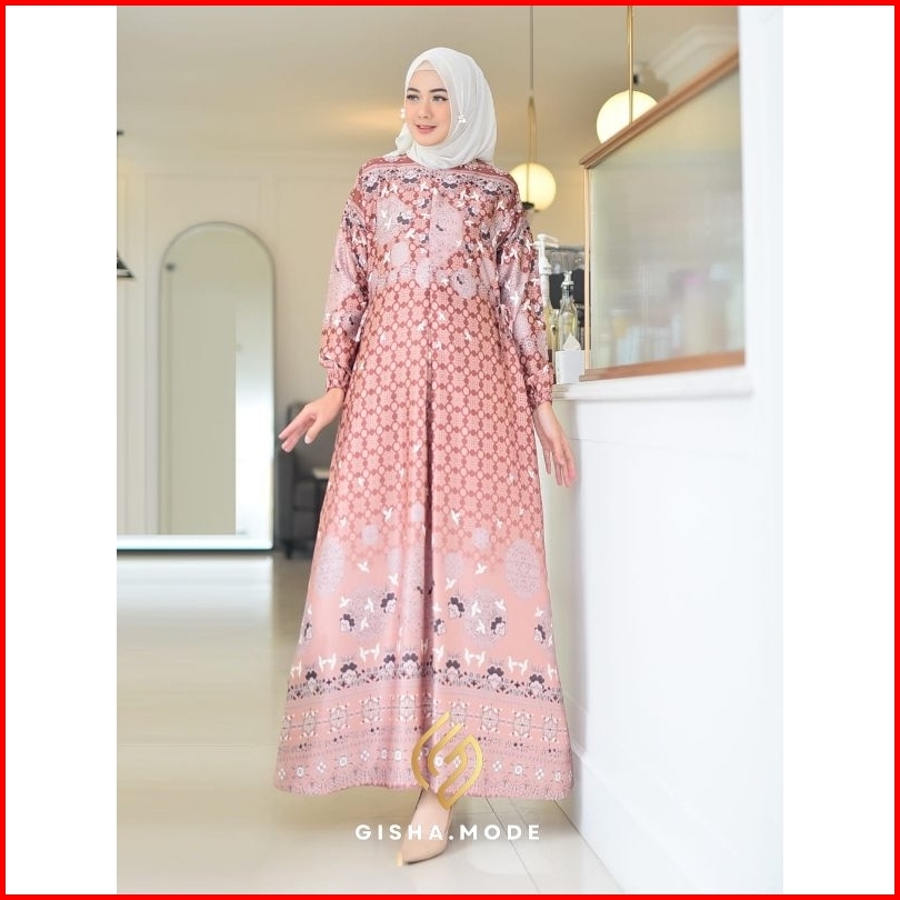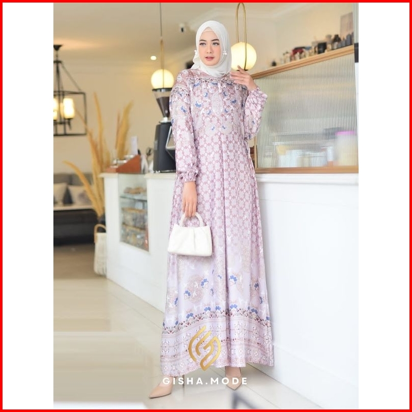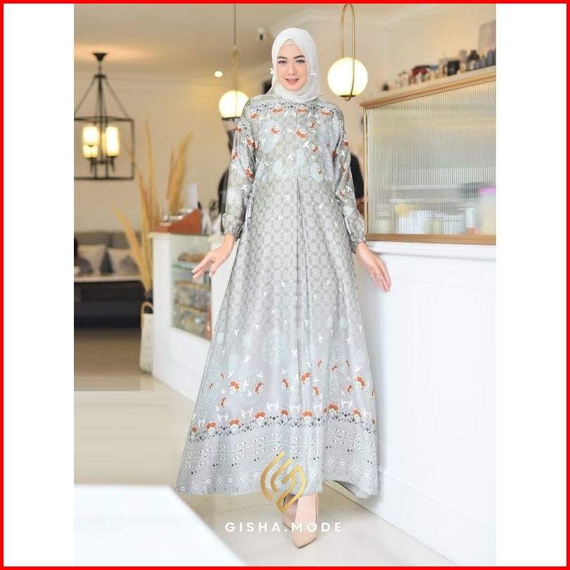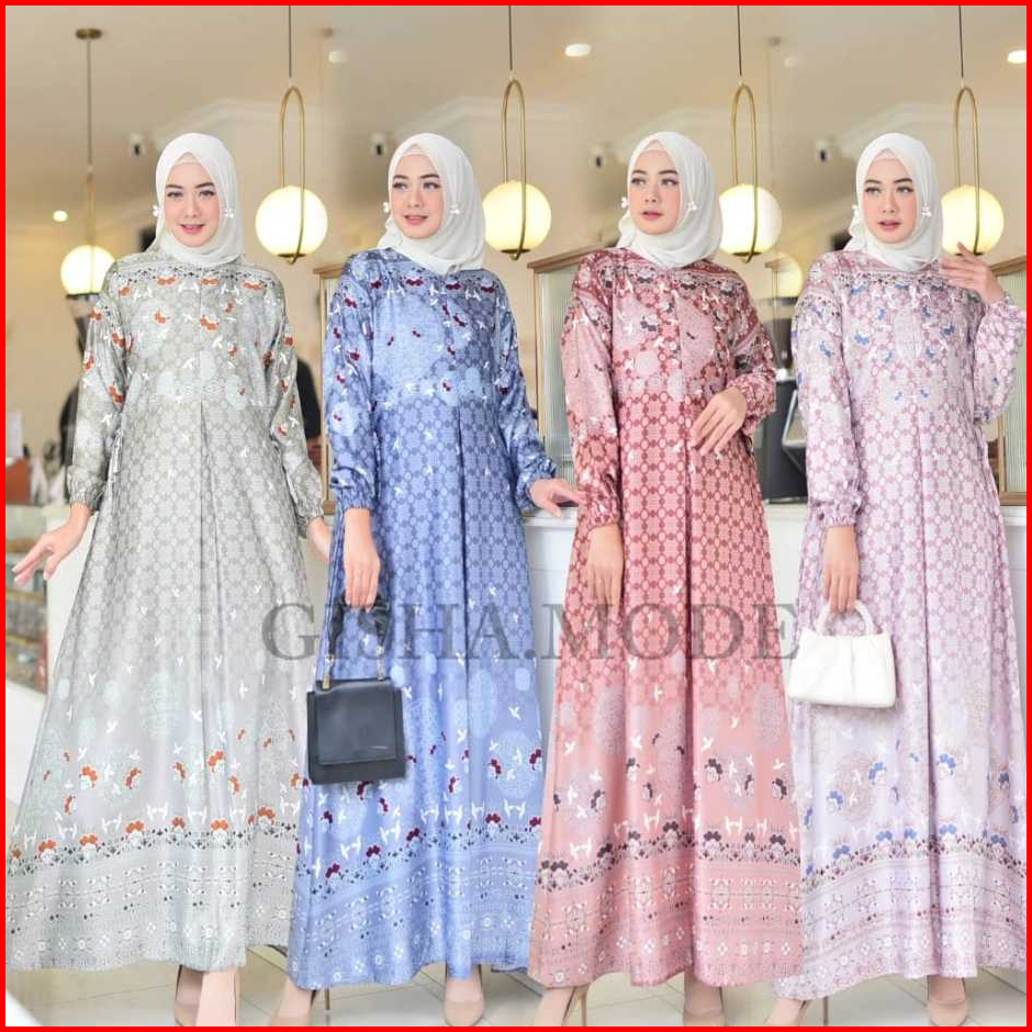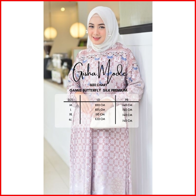 Gisha Mode -gamis Butterfly Silk Silk Premium Gamis Muslim Wanita Elegan Terbaru Busui