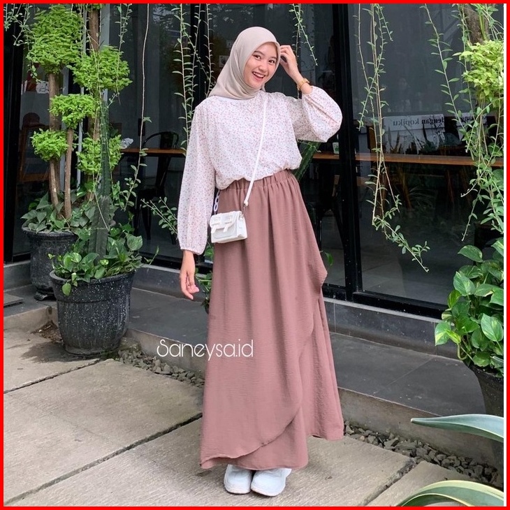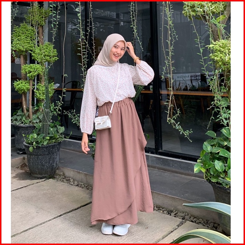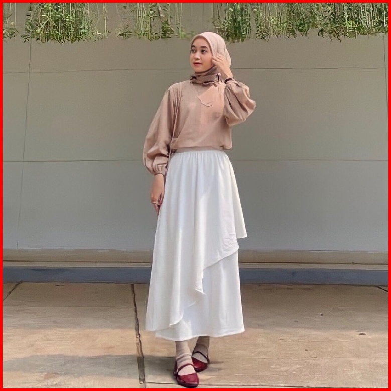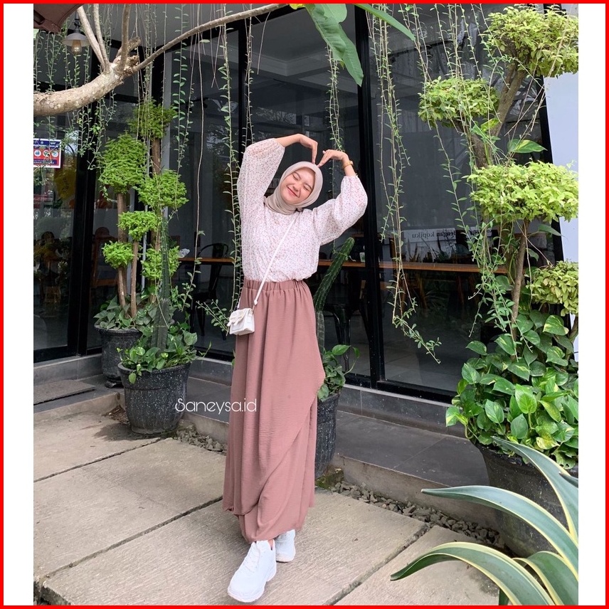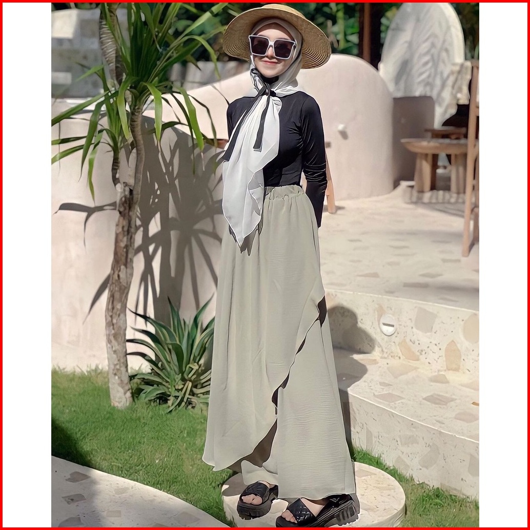 Elsie Layer Skirt Rok Crinkle Wanita - Midi Maxi Skirt - Rok Crinkle Casual Korean Look - Korean Style Rok Wanita - Rok