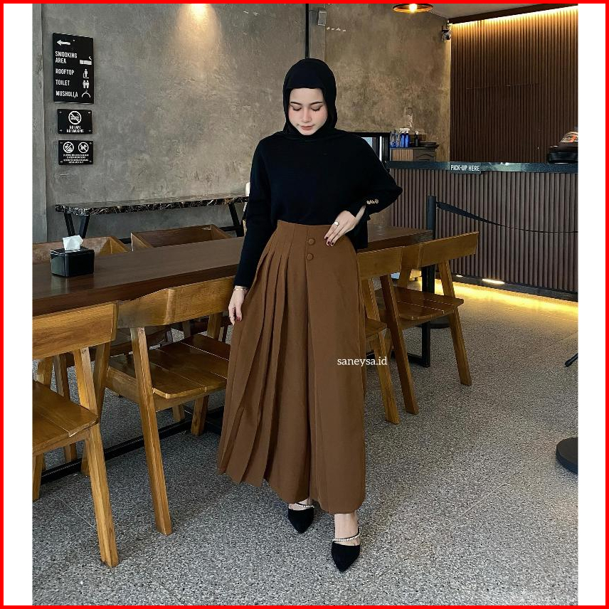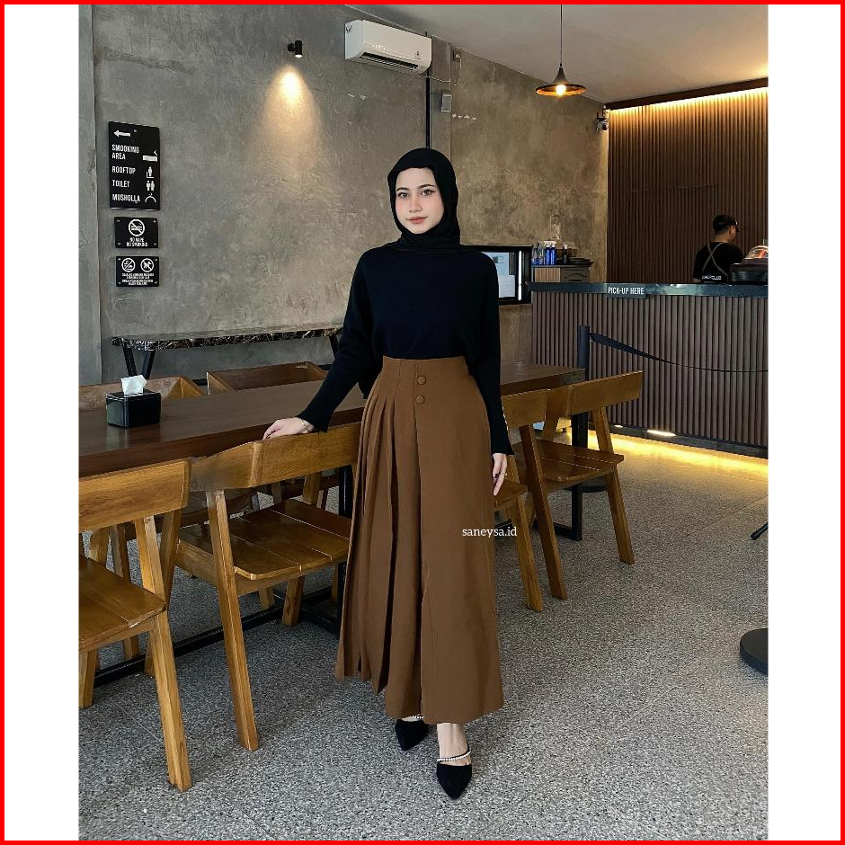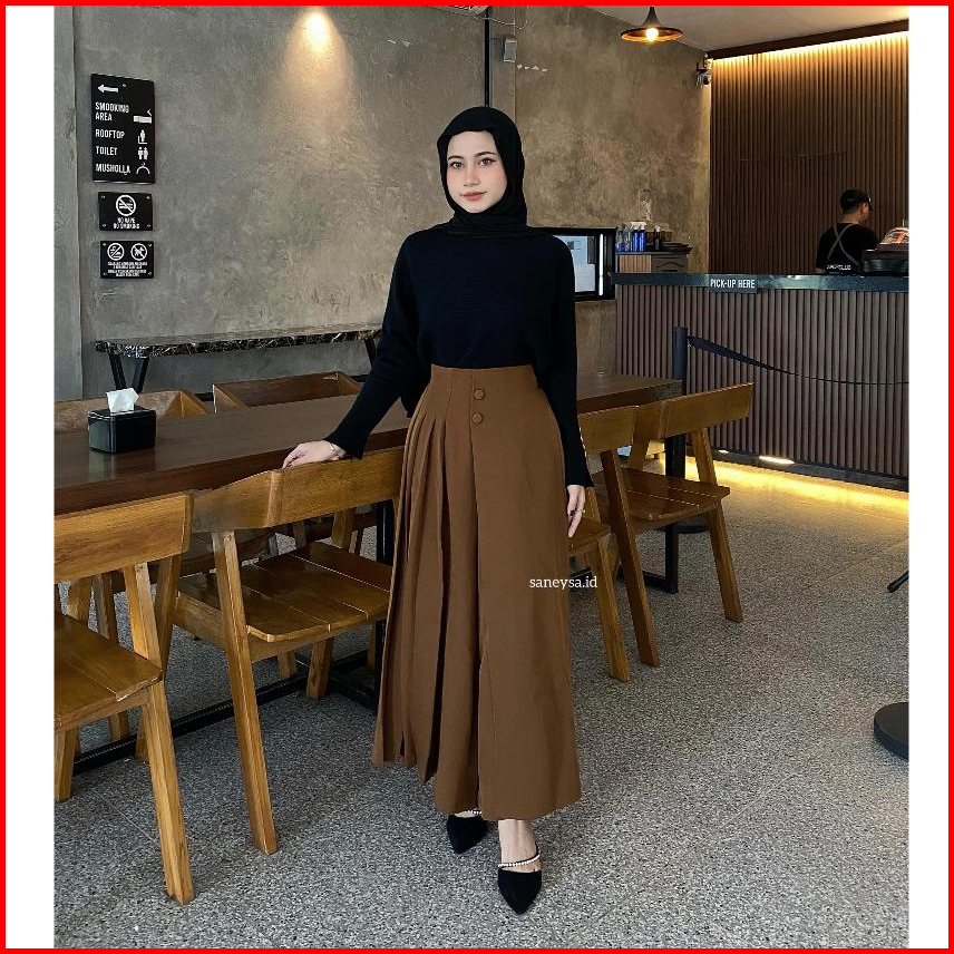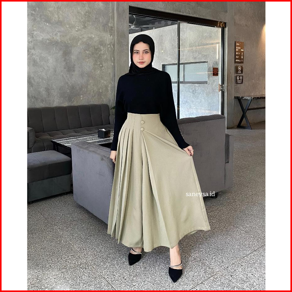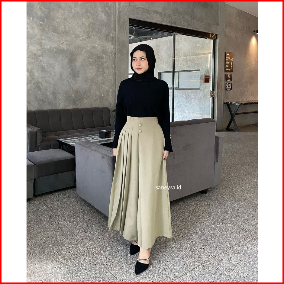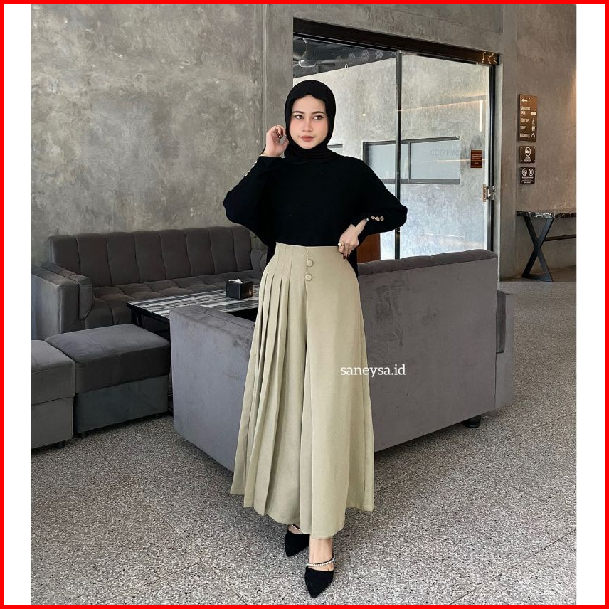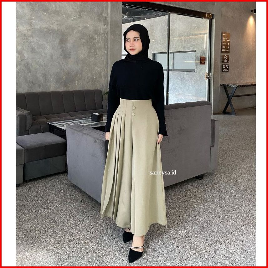 Shenna Kulot Pleats - Celana Kulot Rok Wanita - Celana Bawahan Casual Formal Daily - Semi Wool Skirt - Puspa Kulot Highw