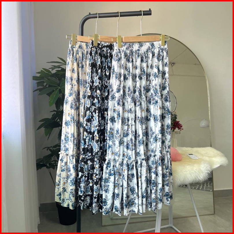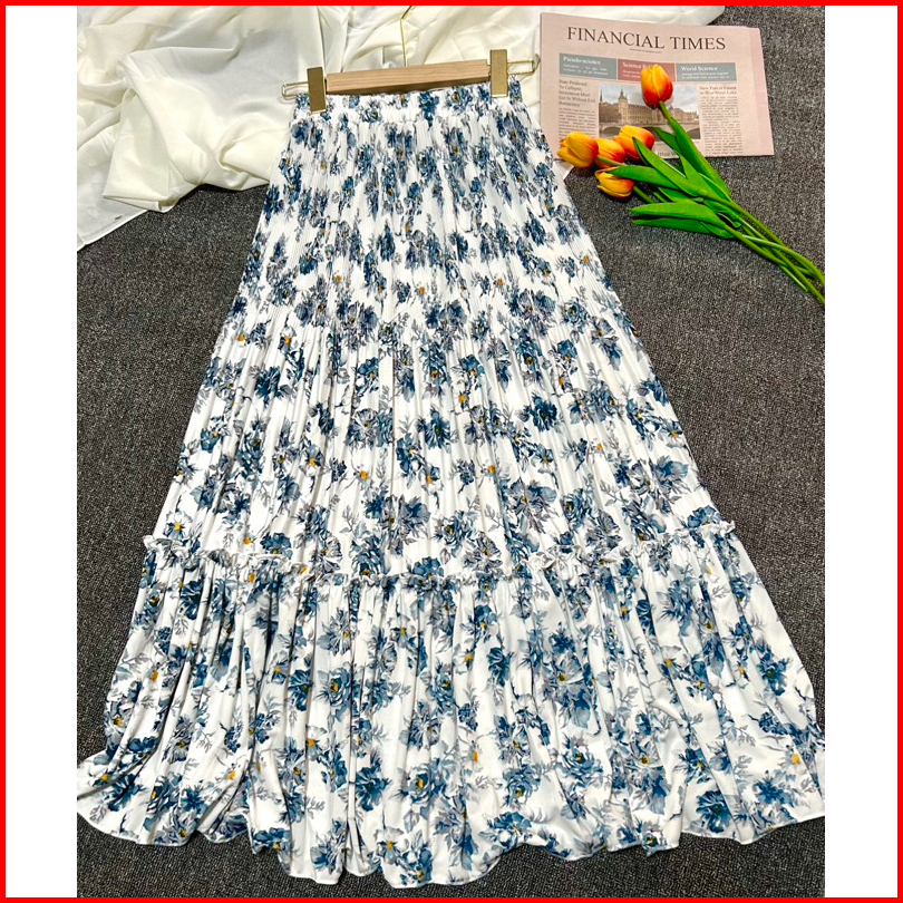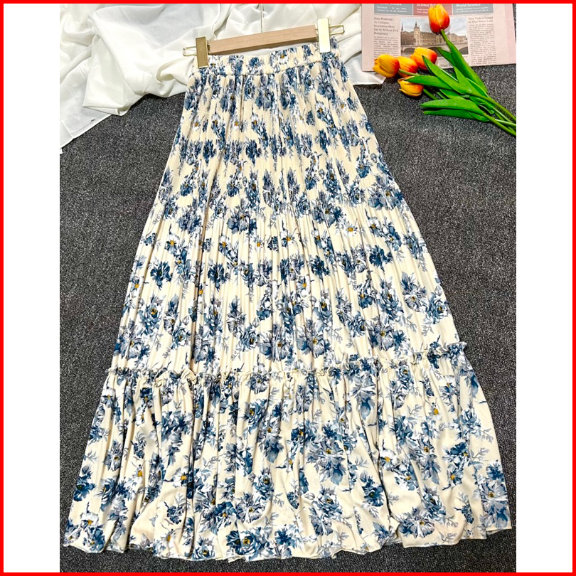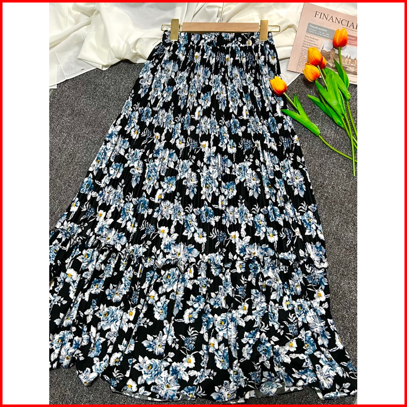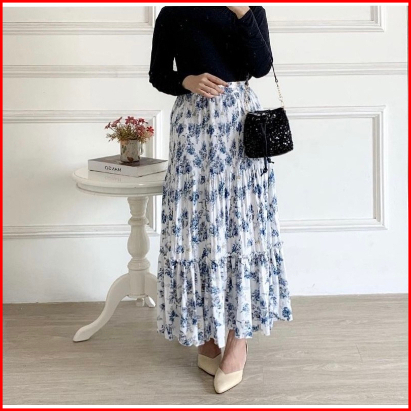 Rok Plisket Premium Wanita Long Skirt Flowers Korean Style