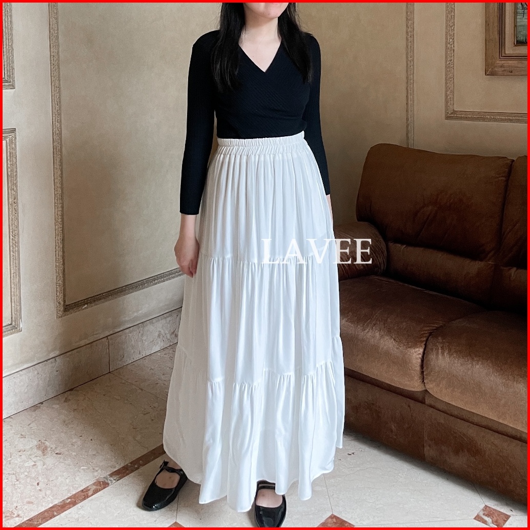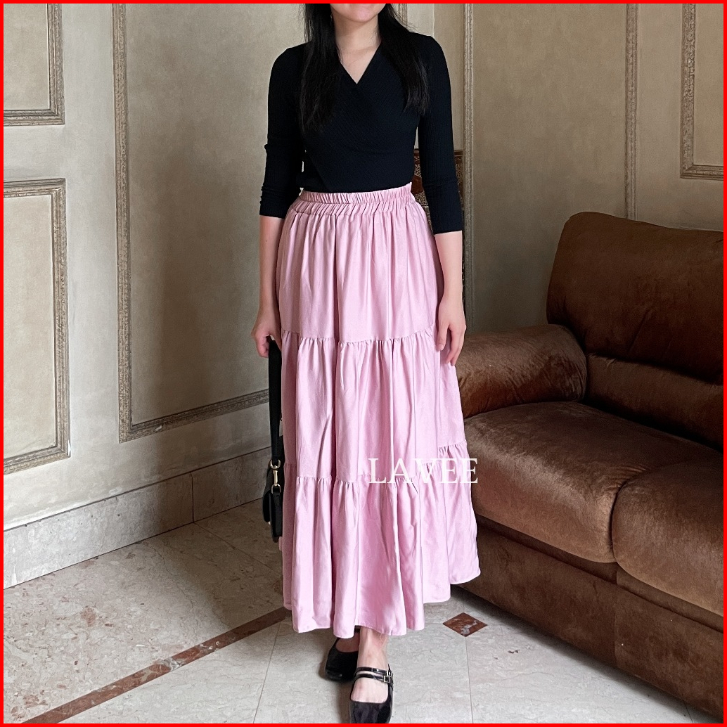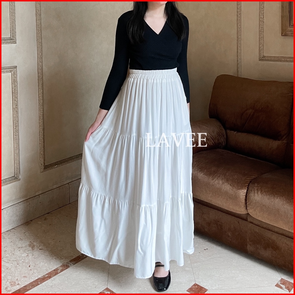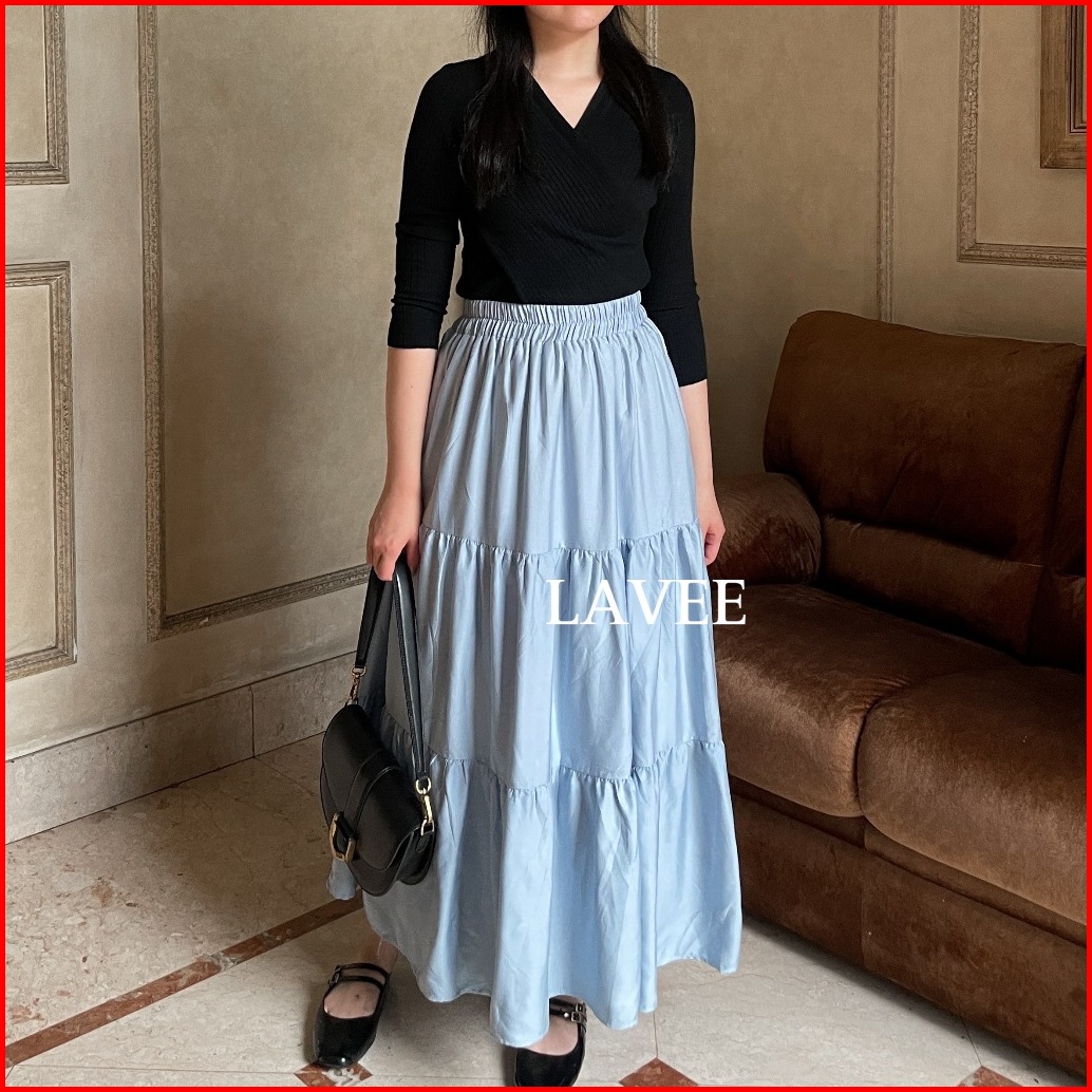 Lavee - Tiffany Skirt Rok Panjang Wanita Maxi Rayon Flowy Basic - Rok 3 Susun Aesthetic