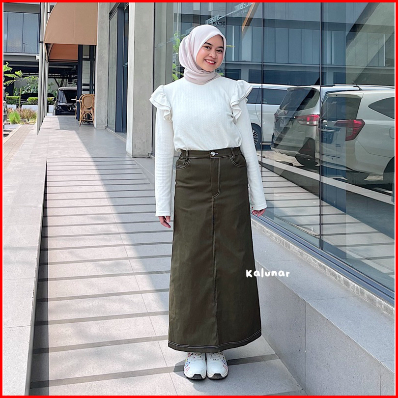 Kalunar - Seira Long Skirt Bawahan Wanita Bahan Stretch Melar