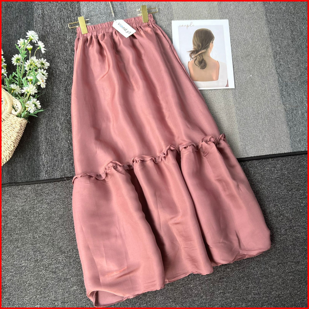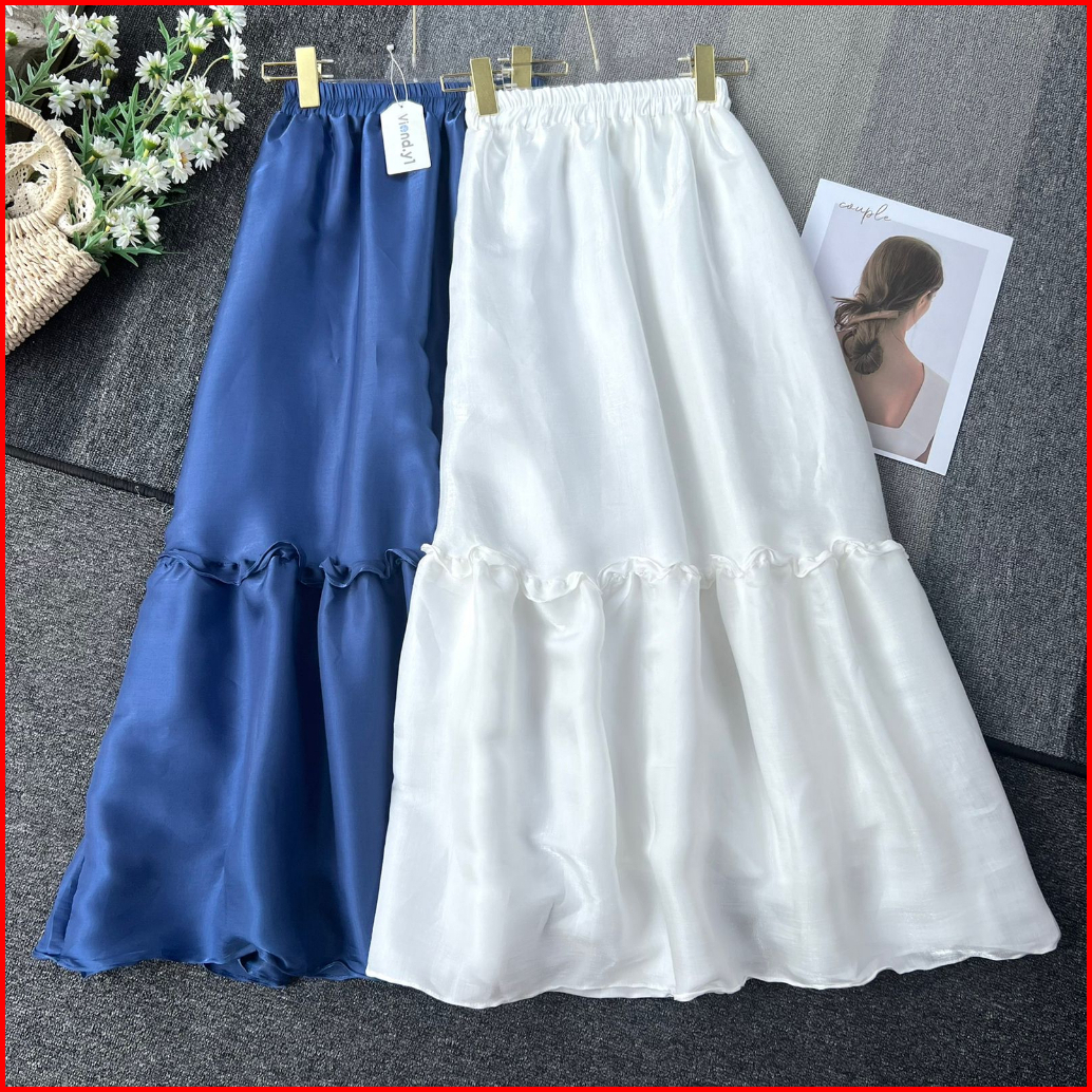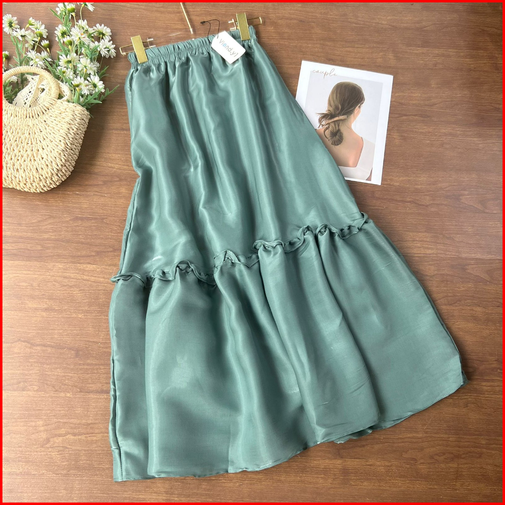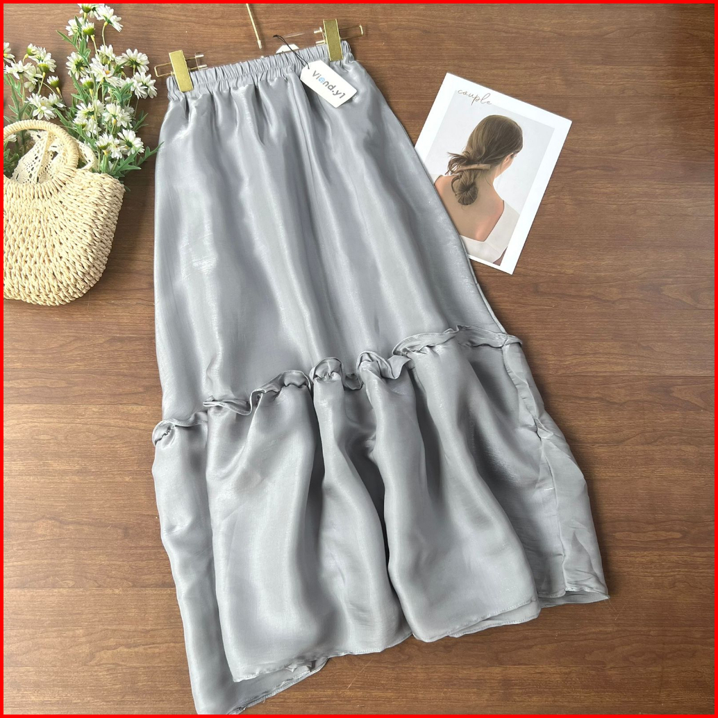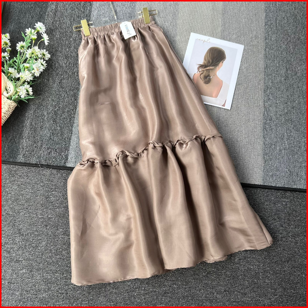 Rok Shimmer Panjang Skirt Wanita Korea Ruffle Full Furing 118