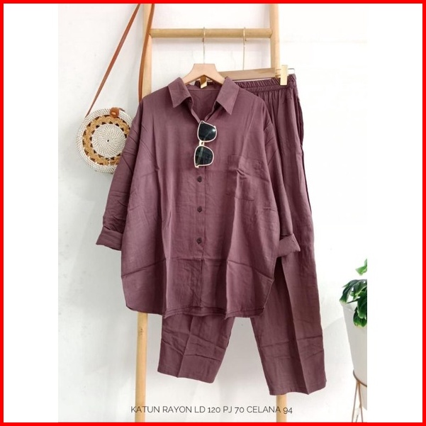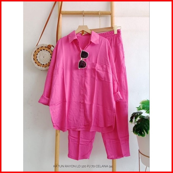 Oneset Daily Wanita Rayon Premium Hq Setcel Polos Setelan Wanita