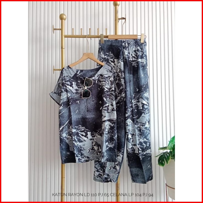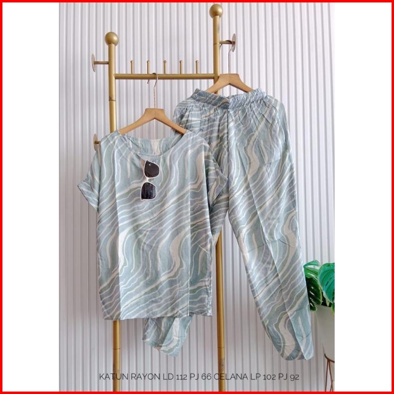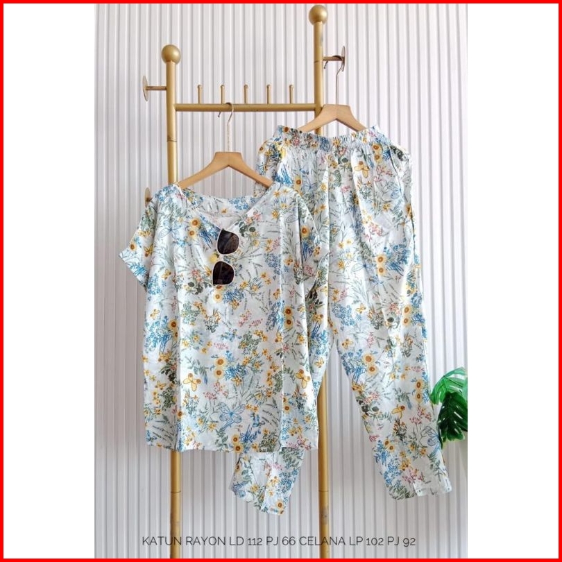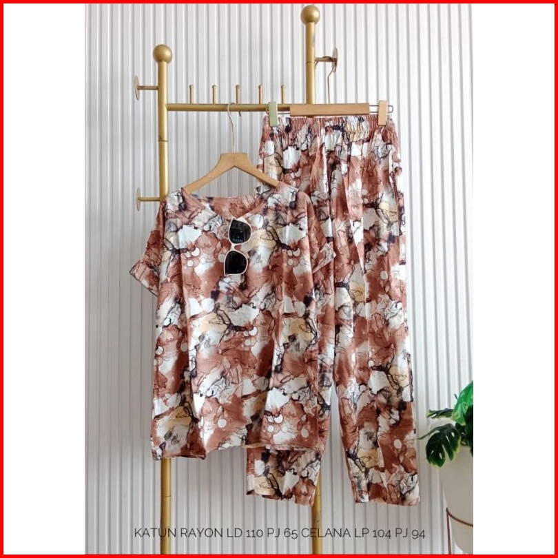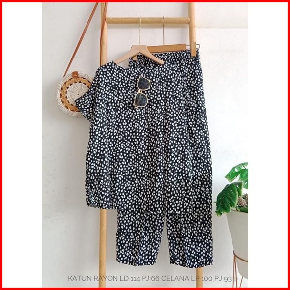 Oneset Pendek Oblong Motif Rayon Premium Hq Setelan Celana Wanita Motif Terbaru