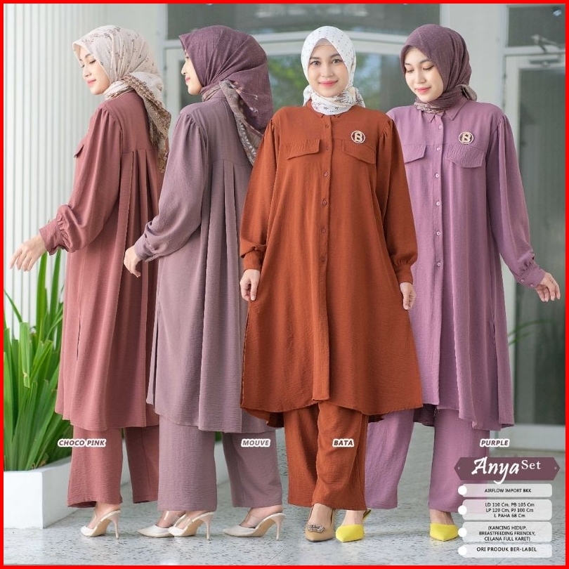 Anya One Set Tunik Premium One Set Crinkle Airflow
