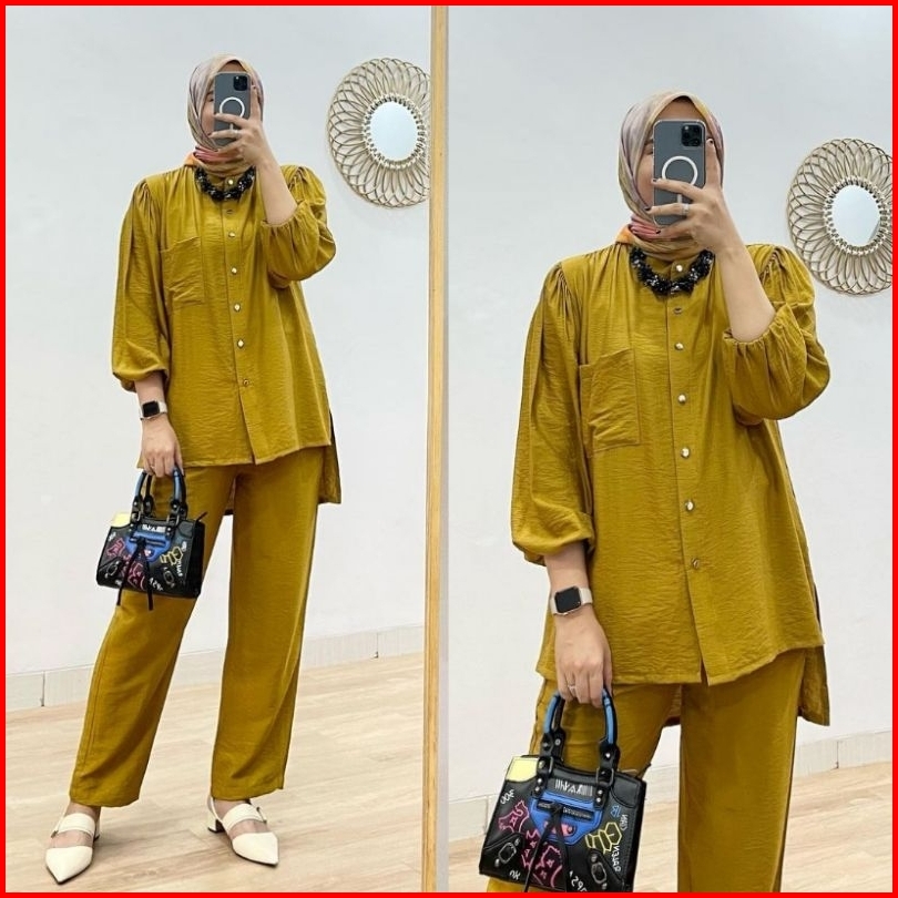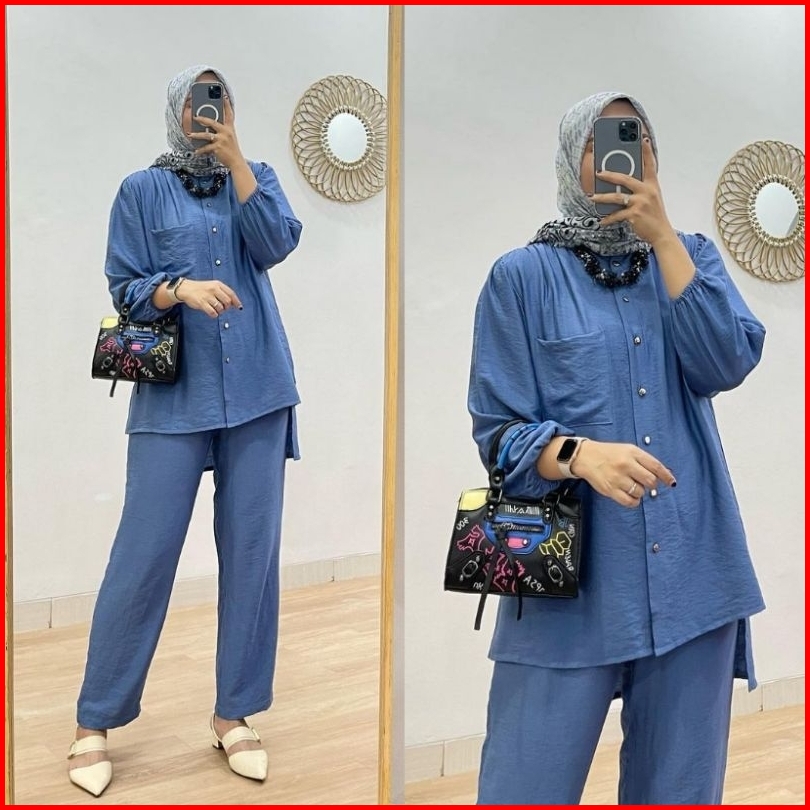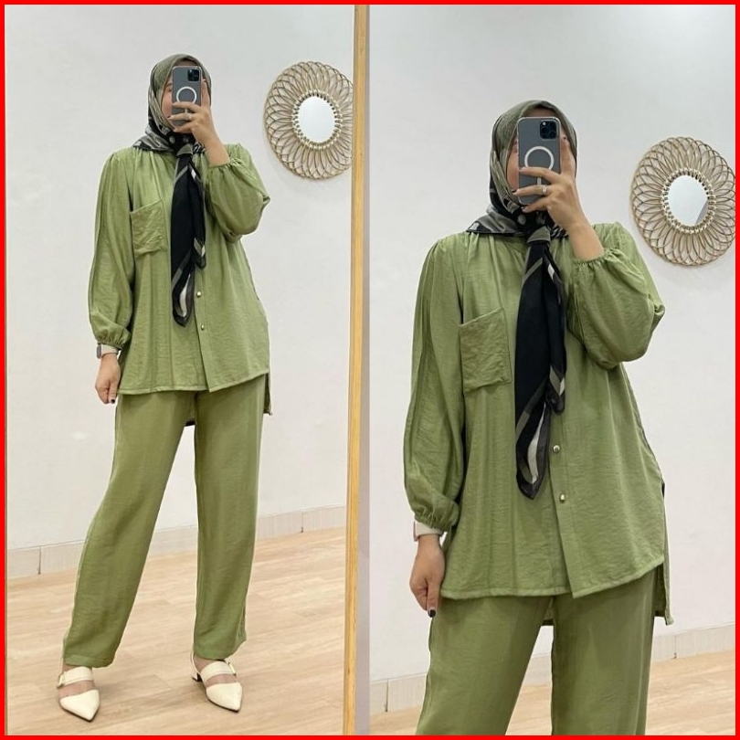Polo Linen Zahra One Set Premium Setelan Polo Linen