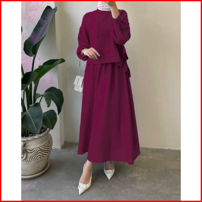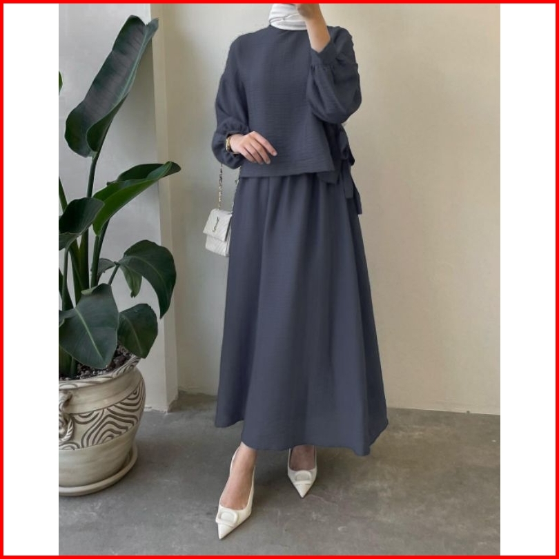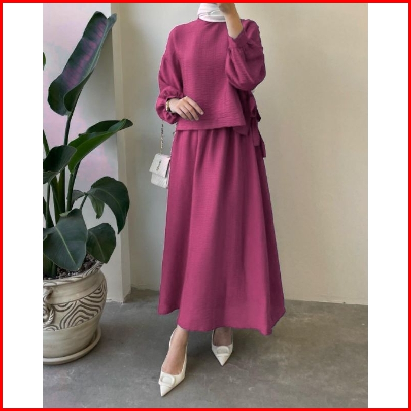 Resti One Set Crop Skirt Premium Setelan Rok Crinkle Airflow