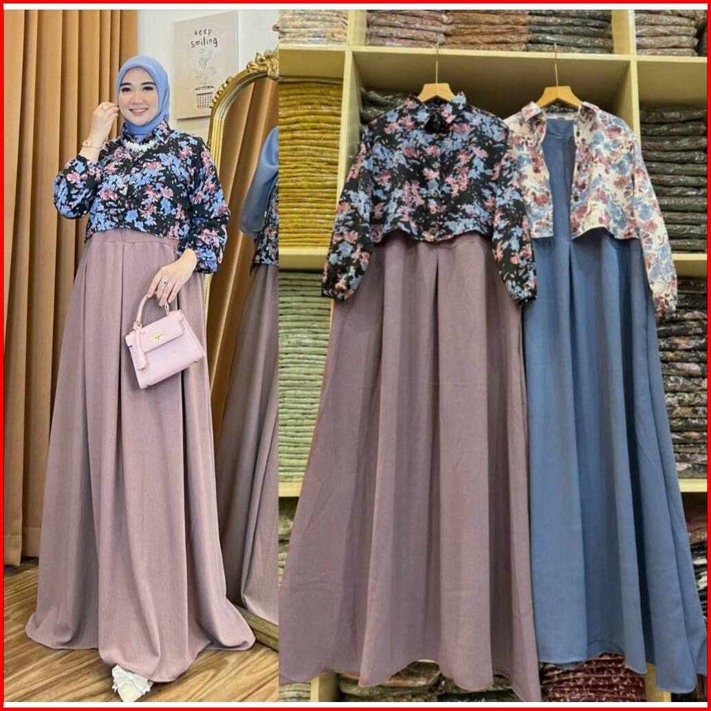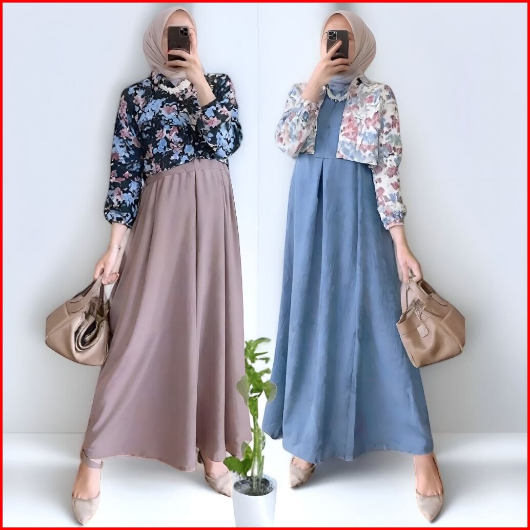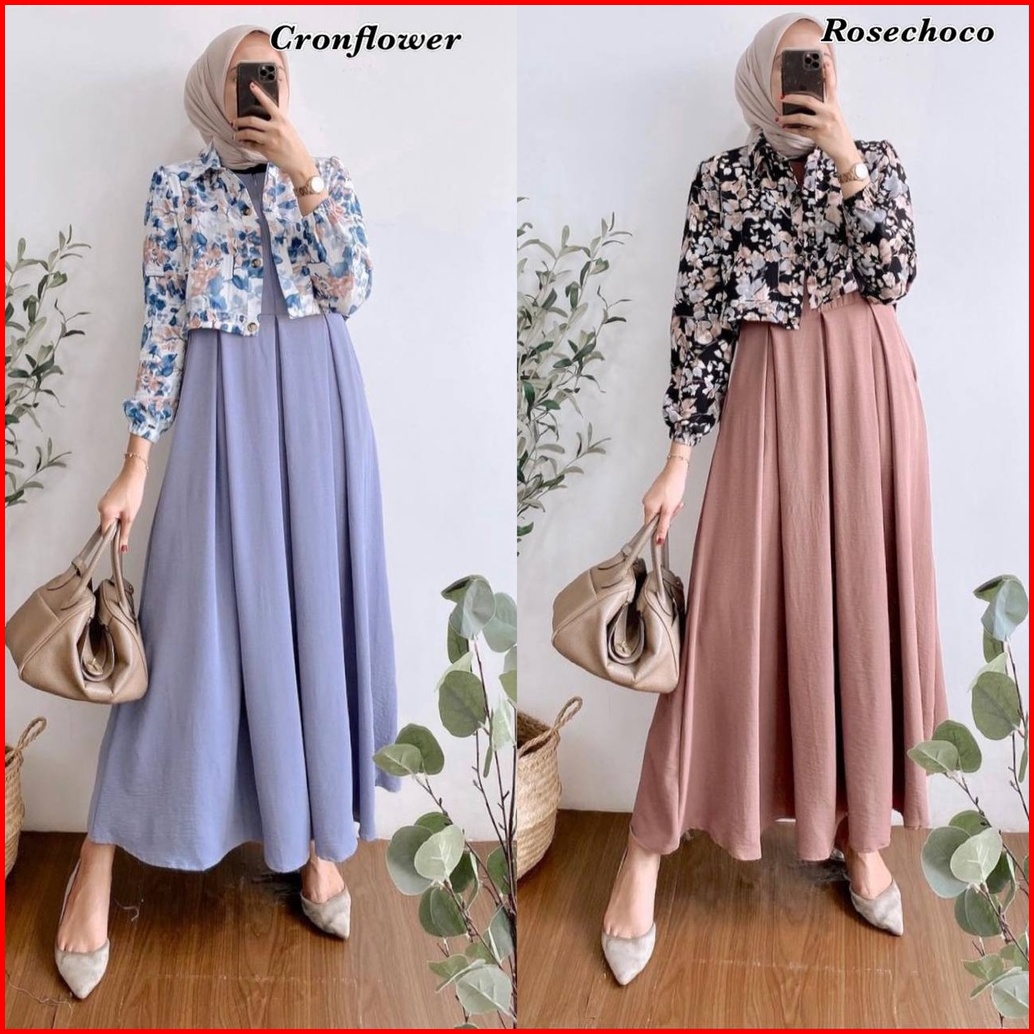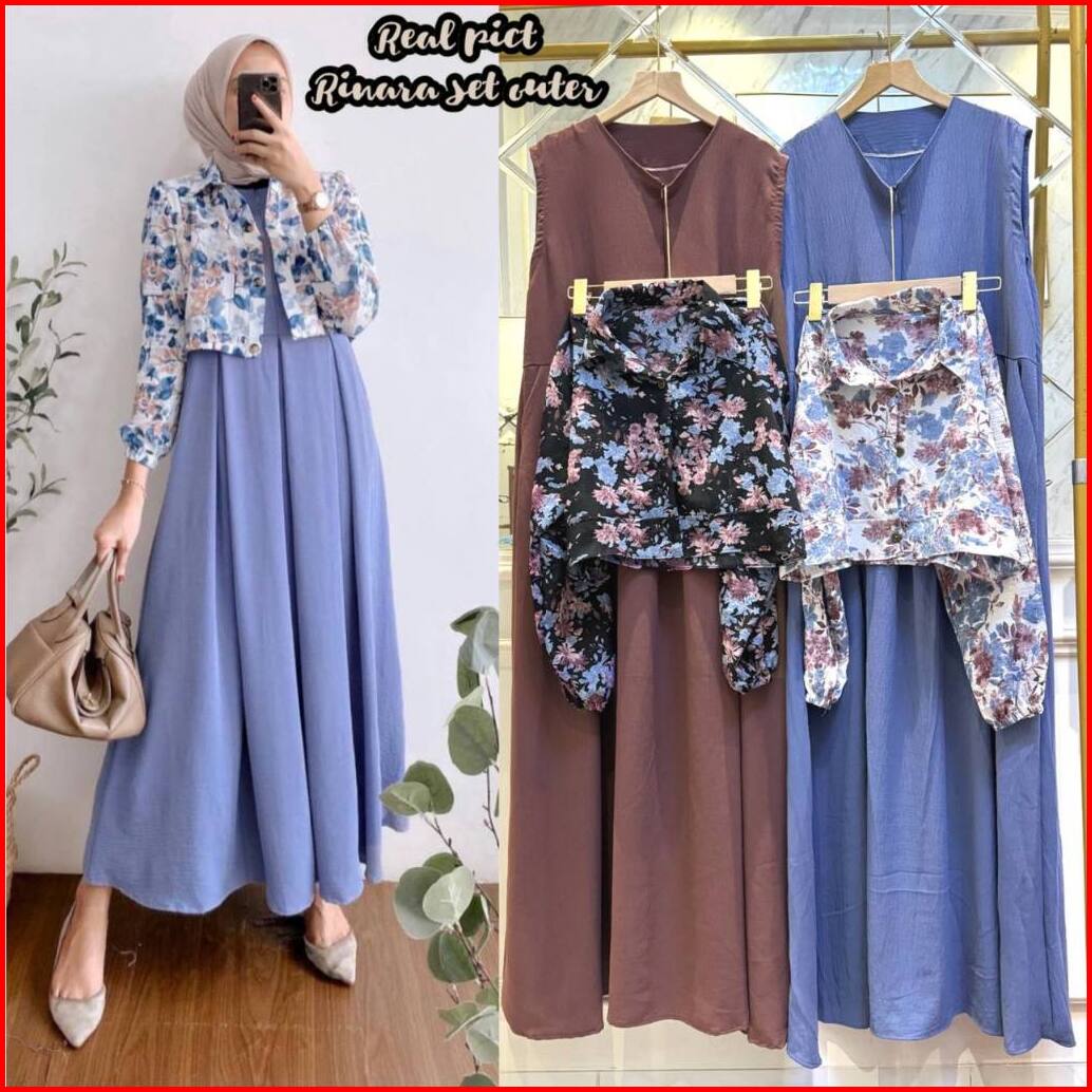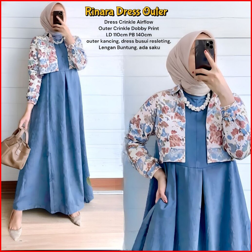 Rinara Dress Set - One Set Wanita Crinkle Airflow Premium Setelan Wanita Baju Dress Muslim Kekinian
