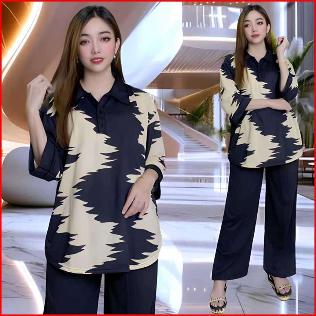 Kamalia Setelan Wanita Ld 120 Oval Setelan Kekinian Kancing Busui Leher Kerah Vistaterry Atasan Oversize Wanita