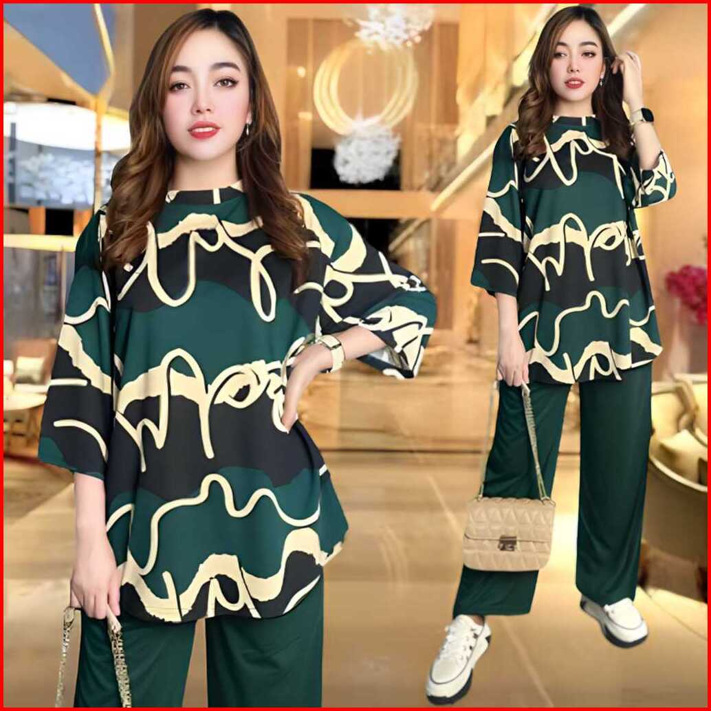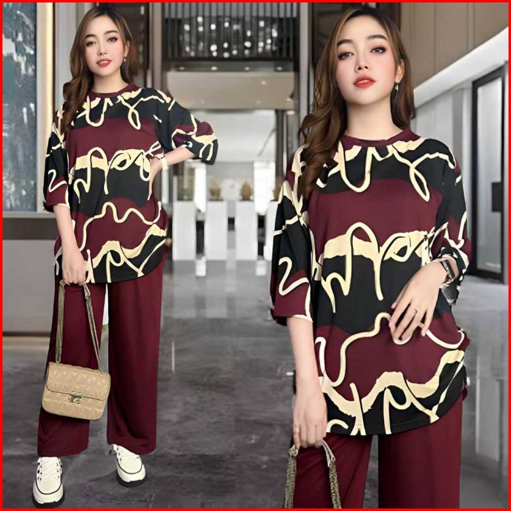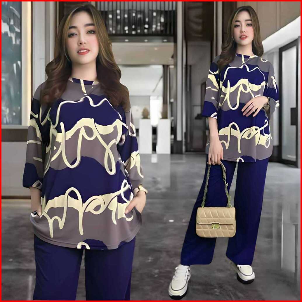 Shafza Setelan Wanita Ld 120 Celana Lurus Dan Atasan Oval Belahan Kiri Dan Kanan Oversize Wanita Celana Lurus Karet Kant