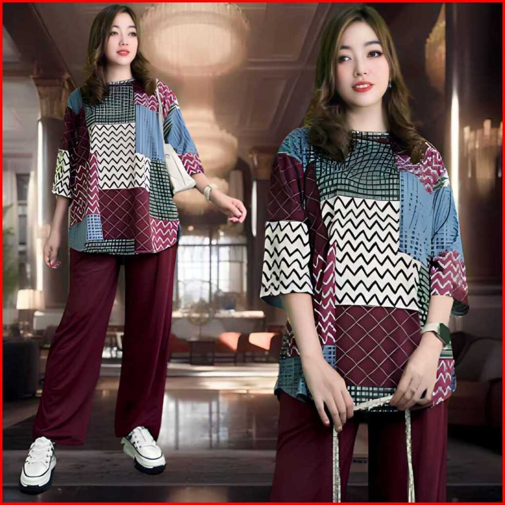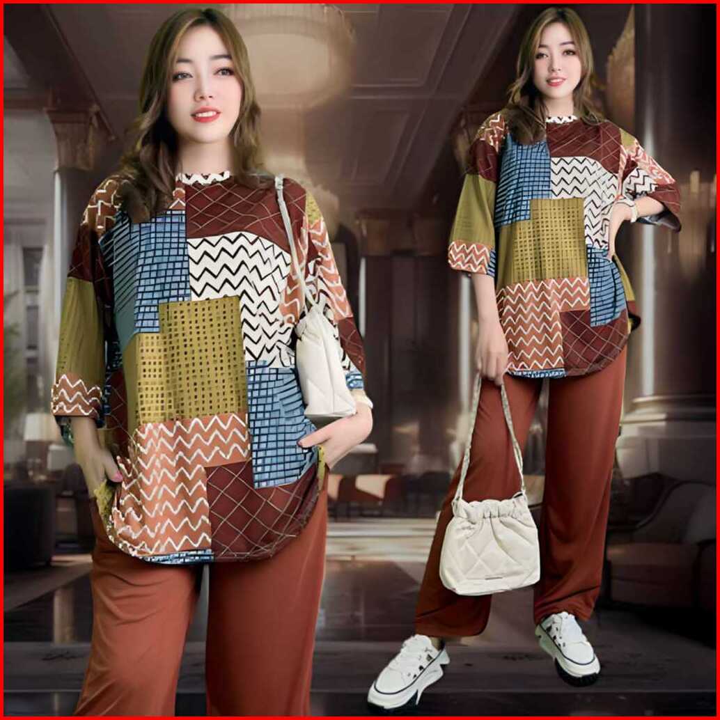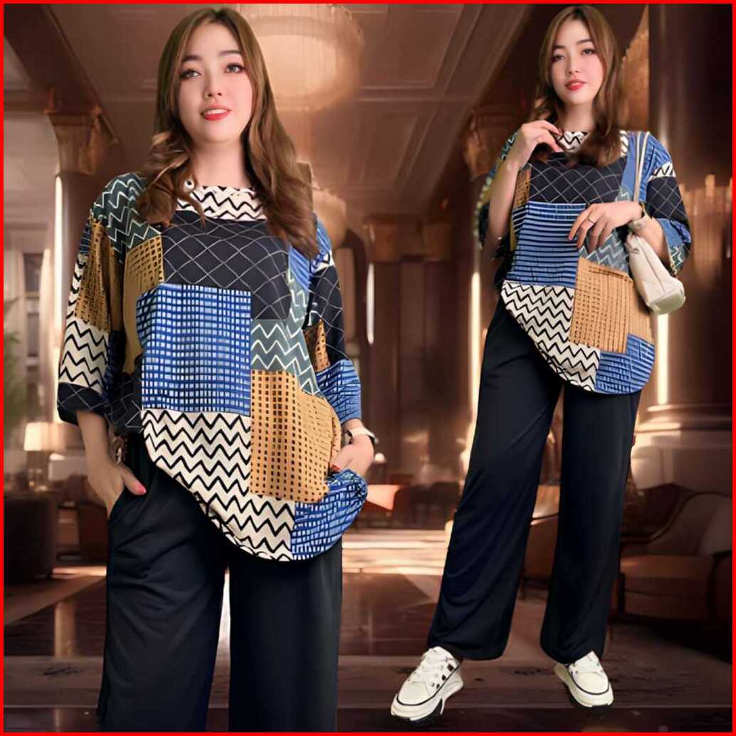 Nauren Setelan Wanita Ld 120 Celana Lurus Dan Atasan Oval Belahan Kiri Dan Kanan Oversize Wanita Celana Lurus Karet Kant