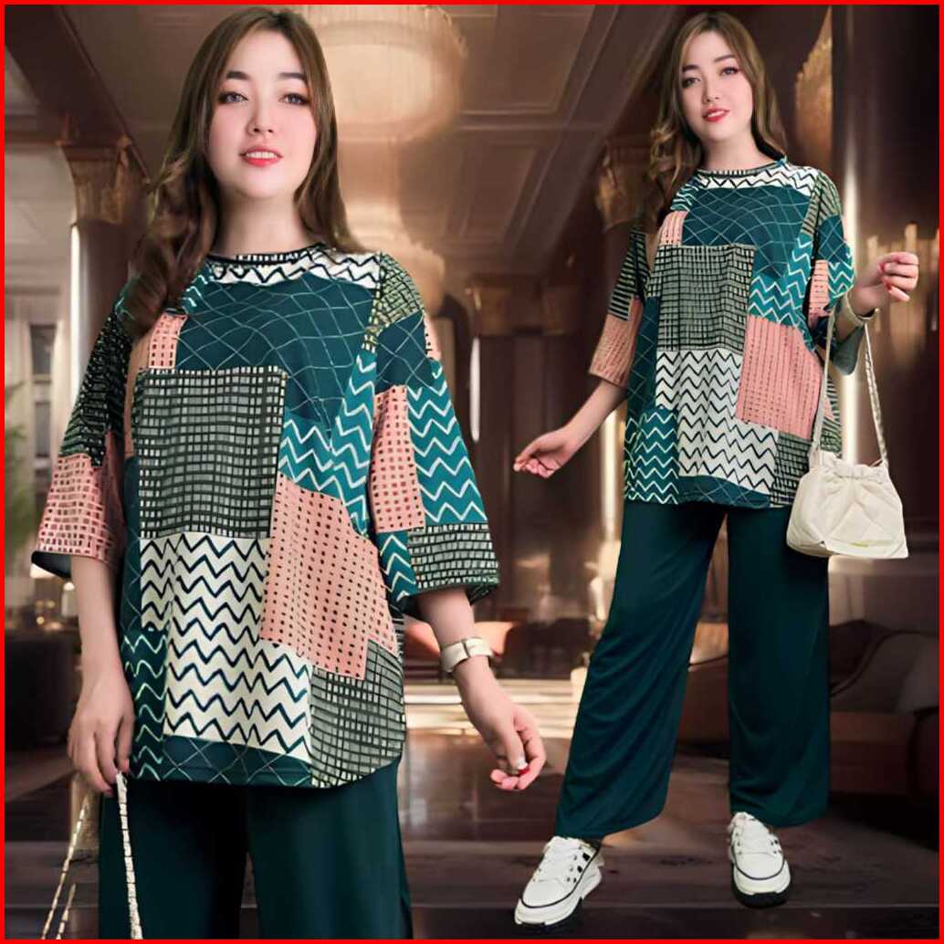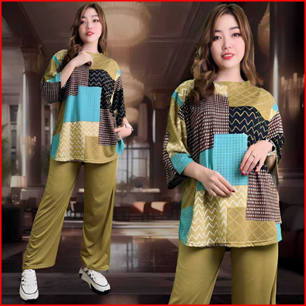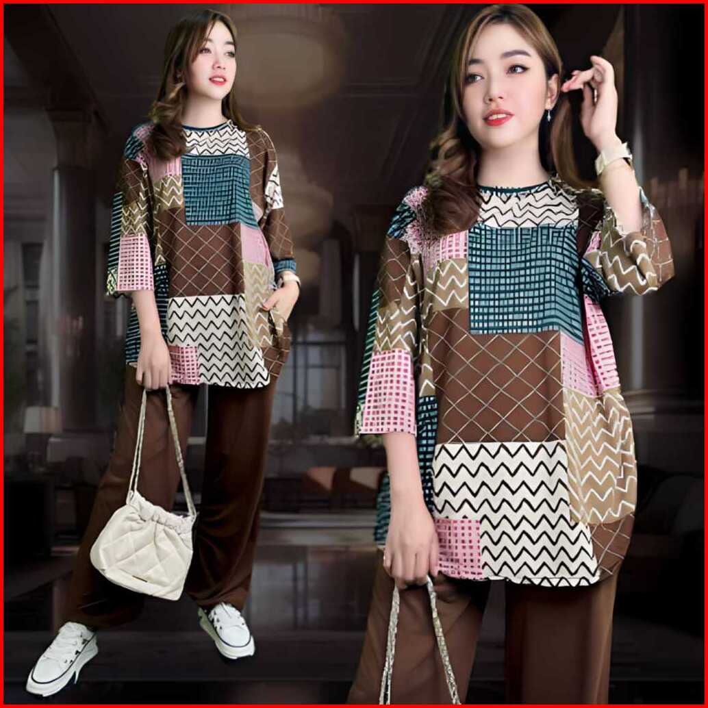 Nauren Setelan Wanita Ld 120 Celana Lurus Dan Atasan Oval Belahan Kiri Dan Kanan Oversize Wanita Celana Lurus Karet Kant