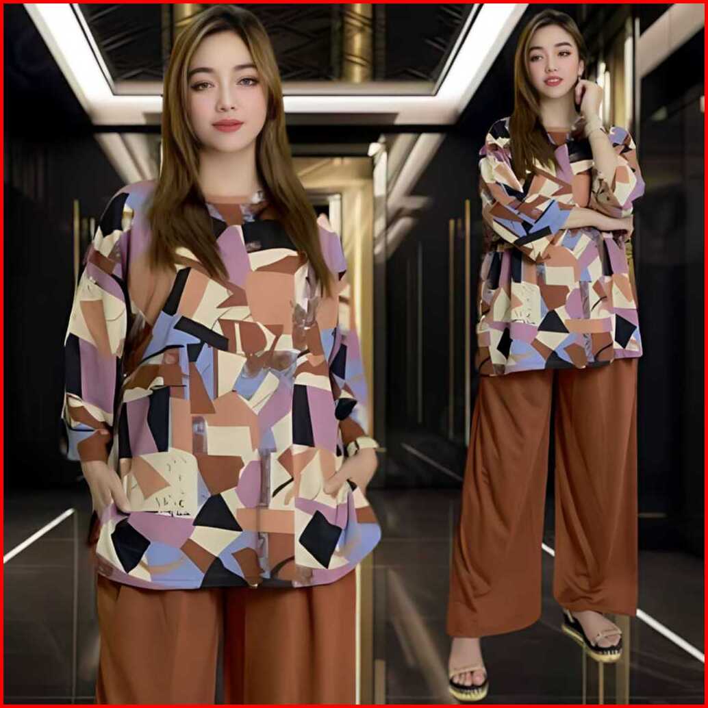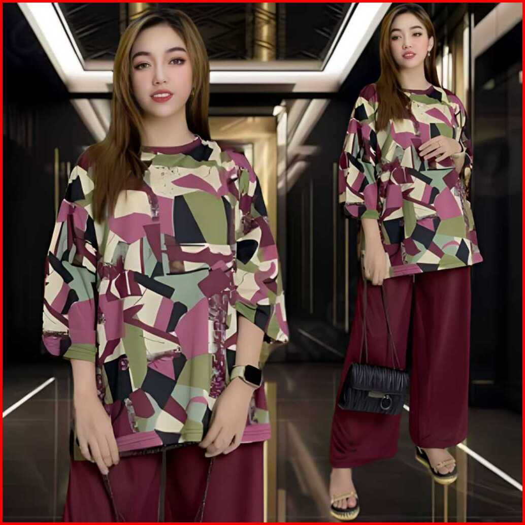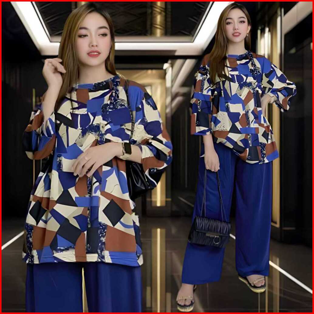 Ragdha Setelan Wanita Jumbo Ld 130 Atasan Oval Wanita Dan Celana Lurus Wanita Baju Oversize Dewasa Motif Celana Panjang